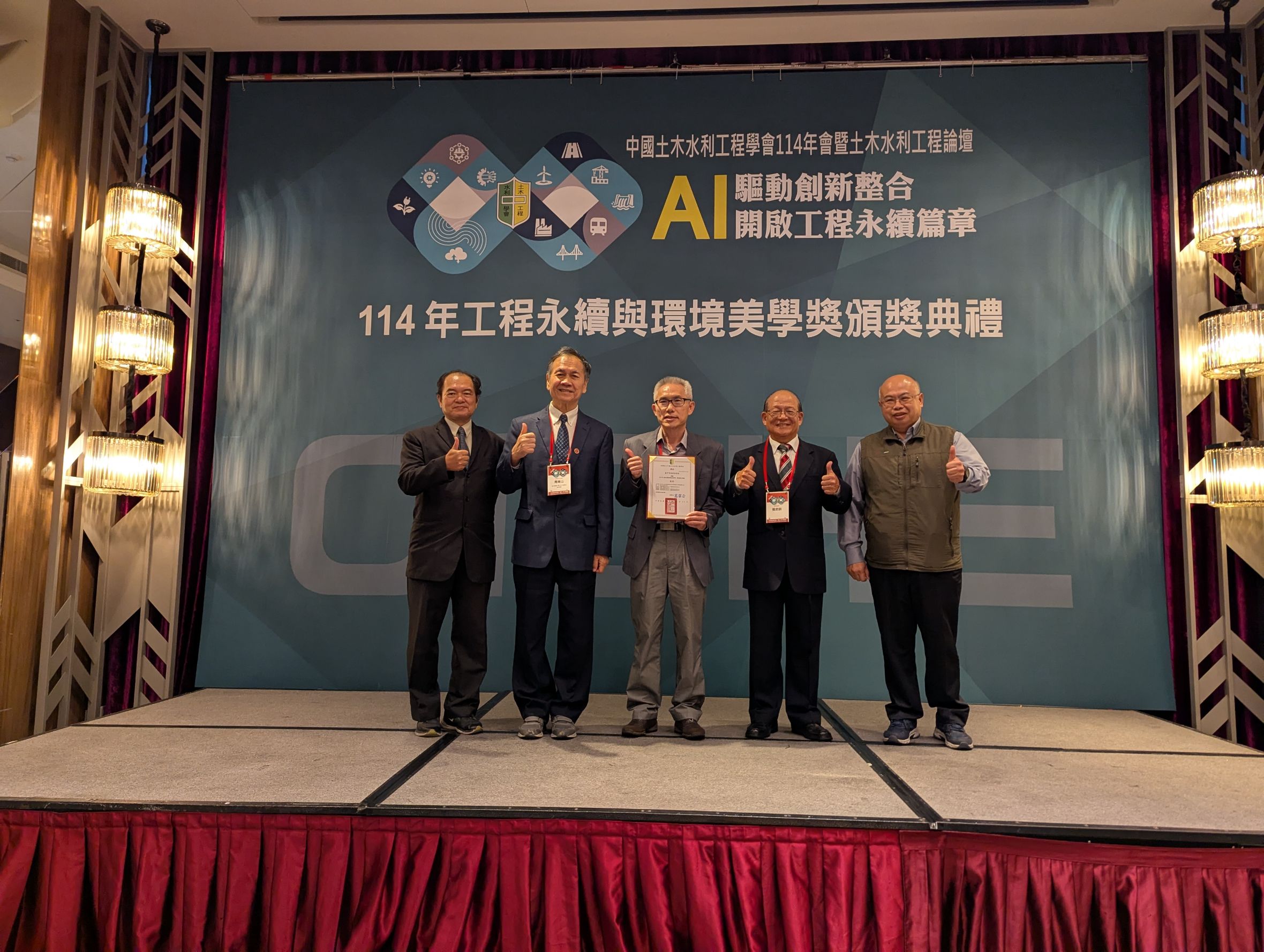 114年「工程永續與環境美學獎」頒獎典禮在今〈21〉日舉辦,台中市政府水利局在環境與生態類中榮獲5項殊榮,「東大溪水環境及鄰近區域環境改善計畫」獲特優獎;「台中市綠川(信義南街-大明路)水環境改善計畫工程B標-台中市綠川水環境改善計畫(興大園道亮點河岸計畫)」、「旱溝排水水環境改善計畫中部科學(后里)園區綠10-2溪畔景觀池工程」、「軟埤仔溪水環境改善工程」等3案獲優等獎;「台中市小水力發電開發計畫-食水嵙溪排水口發電廠興建工程」獲佳作獎,彰顯市府在推動優質水環境及發展綠能永續上的努力備受肯定。