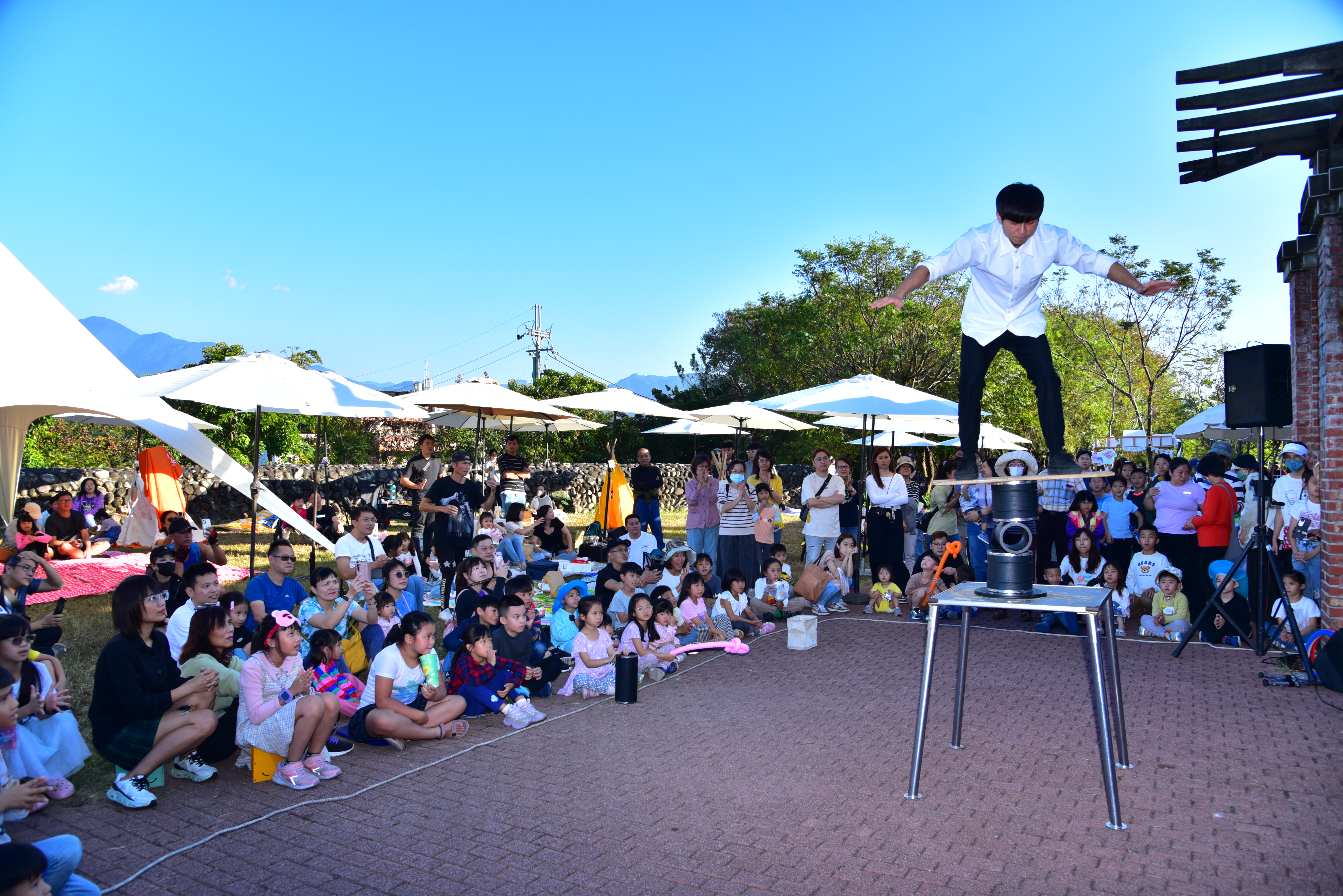 台中市政府客家事務委員會昨(23)日於東勢客家文化園區舉辦「東勢午茶生活節—野餐音樂會」,今年活動邁入第二屆,延續去年熱烈迴響,結合在地咖啡、甜點品牌、市集與音樂表演,以「草地、音樂、咖啡香」打造獨具風格的山城文化場域,邀請市民攜家帶眷共度悠閒午後。