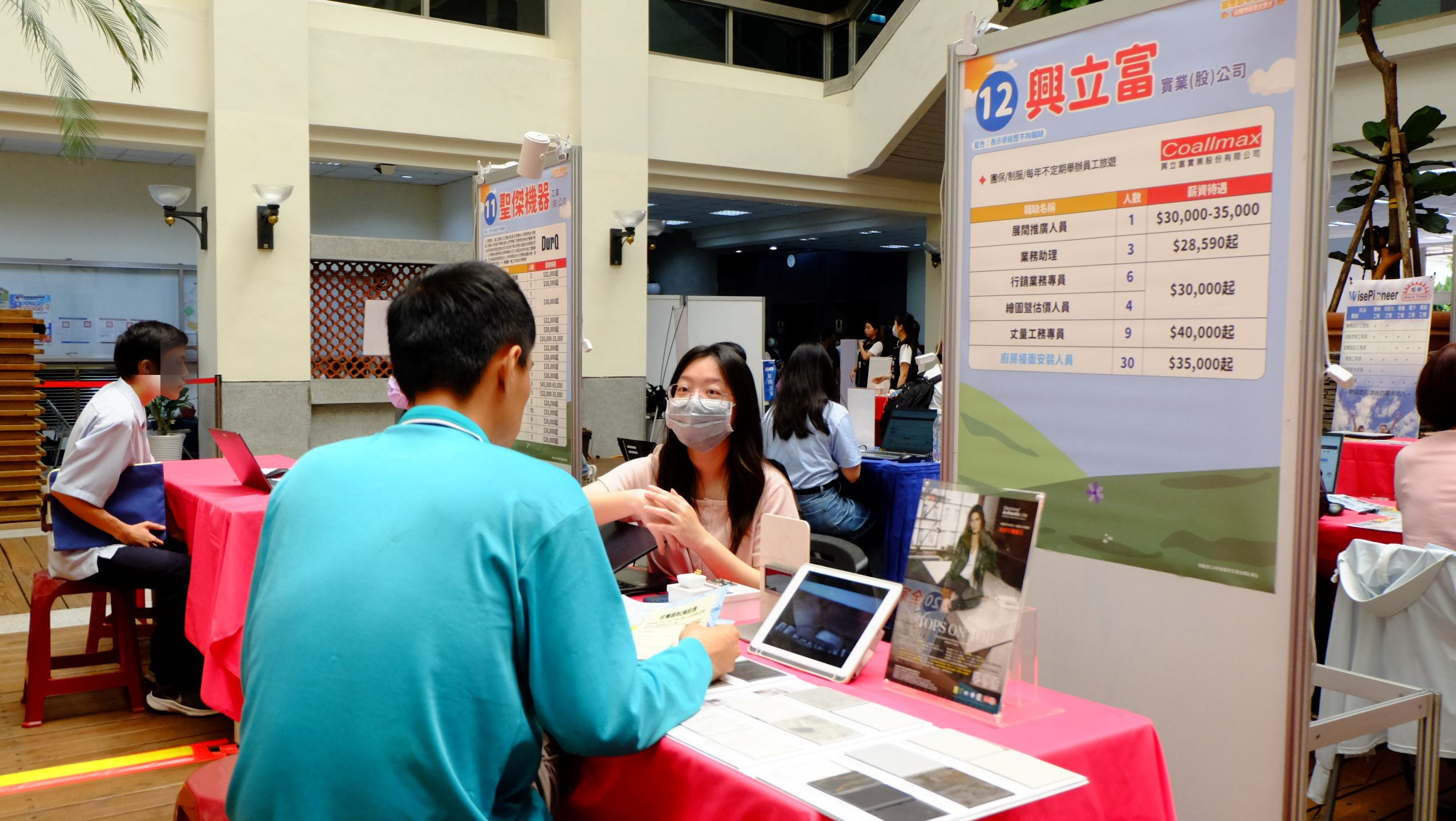 林局長進一步表示,此次「富市台中 就業成功」12月系列徵才廣邀在地多元產業,共邀請35家次廠商提供超過700個職缺,更規劃2場銀髮人才服務據點徵才活動;其中西班牙進口高級人造石材總代理商「興立富」開出薪資上看8萬元的丈量工務專員職缺,知名光學鏡頭研發製造商「先進光電」開出薪資上看6萬元的無塵室技術助理職缺,高性能半導體測試介面供應商「穎崴科技」則開出薪資高達5萬元的的Probe Card產品應用工程師職缺,歡迎市民朋友把握機會,踴躍參加!