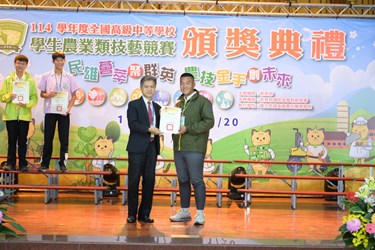 教育局指出,農業類技藝競賽項目包含農場經營、造園景觀、畜產保健、生物產業機電、食品加工及檢驗分析等9個職種,不僅與土地有實際深度連結,更涵蓋運用科技關心經濟動物健康及人民食品安全等項目;賽事結合專業知識與實務操作,選手必須投入大量時間練習才能在全國舞台脫穎而出。這次新社高中榮獲3優勝,分別由張愛鈴同學及陳秉澤同學獲得「農場經營職種」優勝、蔡秉翰同學獲得「造園景觀職種」優勝。