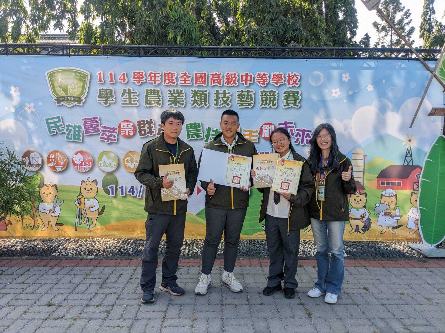 教育部主辦「114學年度全國高級中等學校學生技藝競賽」農業類競賽,11月18日至20日在嘉義民雄農工舉行,全國計31校、250位學生同場較勁,台中市2所學校、10名學生參賽,最終由新社高中獲得3優勝的佳績。