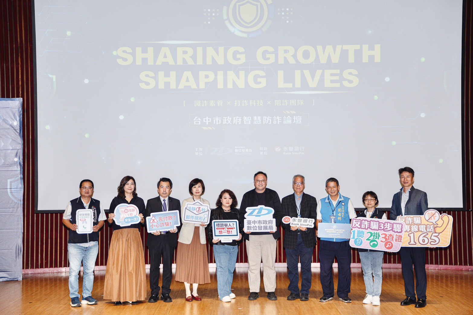 為強化民眾對詐騙事件的識別力與防護力,台中市政府數位發展局與永豐銀行合作於昨(24)日下午舉辦「智慧防詐論壇」,透過專家解析、實務經驗分享與跨領域對談,聚焦全民關注的防詐必修課。台中市副市長鄭照新強調,市府持續推動產官學合作,共同打造安全、韌性的智慧防詐生態系。