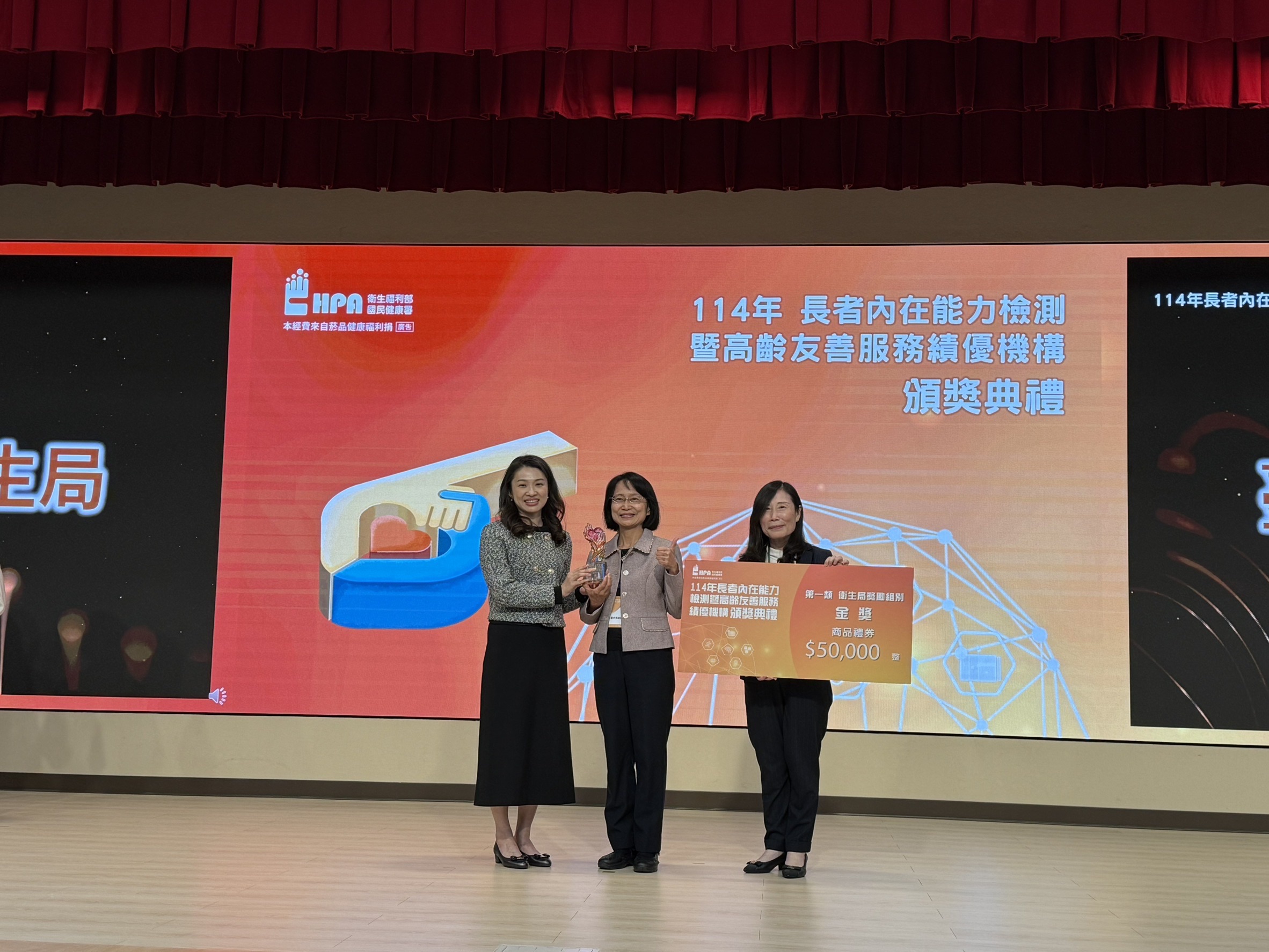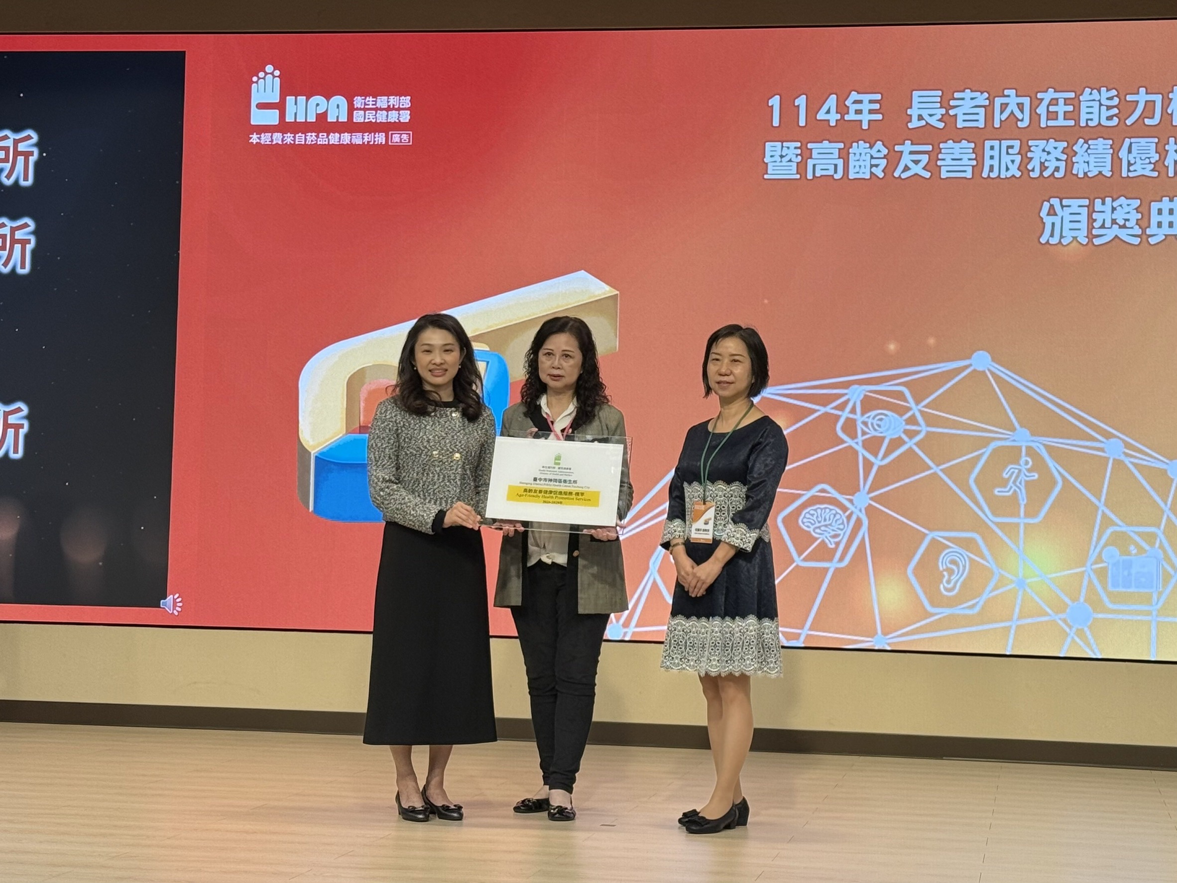衛生福利部國民健康署今(26)日舉辦「114年長者內在能力檢測暨高齡友善服務績優機構頒獎典禮」,台中市政府衛生局在六都組評比中脫穎而出,勇奪長者內在能力檢測(ICOPE)「金獎」肯定,同時於高齡友善服務績優機構評選表現亮眼,再度展現本市在高齡健康服務領域的深耕成果。