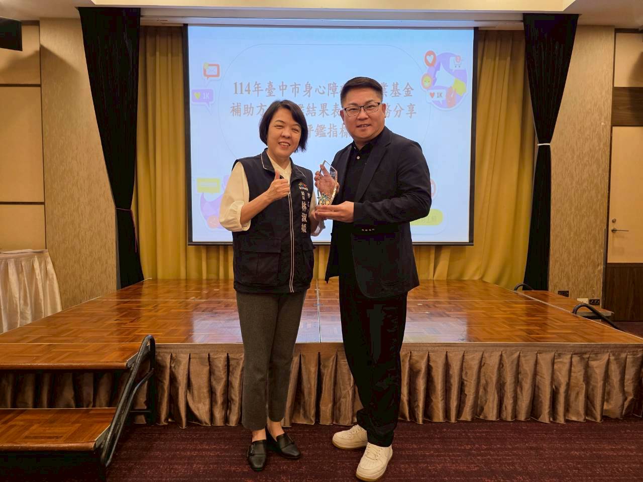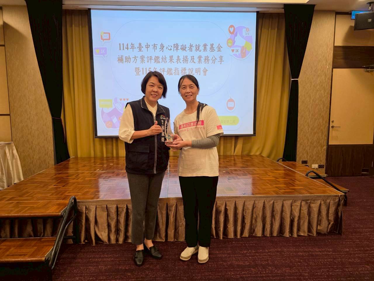 台中市政府勞工局為提升身心障礙者就業服務品質,落實就業平權與職場共融,積極推動身心障礙者職業重建服務及各項就業促進方案,今(28)日於全國大飯店表揚今年度「身心障礙者就業基金補助方案評鑑」優良單位,共有多家推動庇護性就業、支持性就業、職業訓練及職業重建等方案之單位獲獎,表現優異,展現台中市在促進身心障礙者就業上的成果。