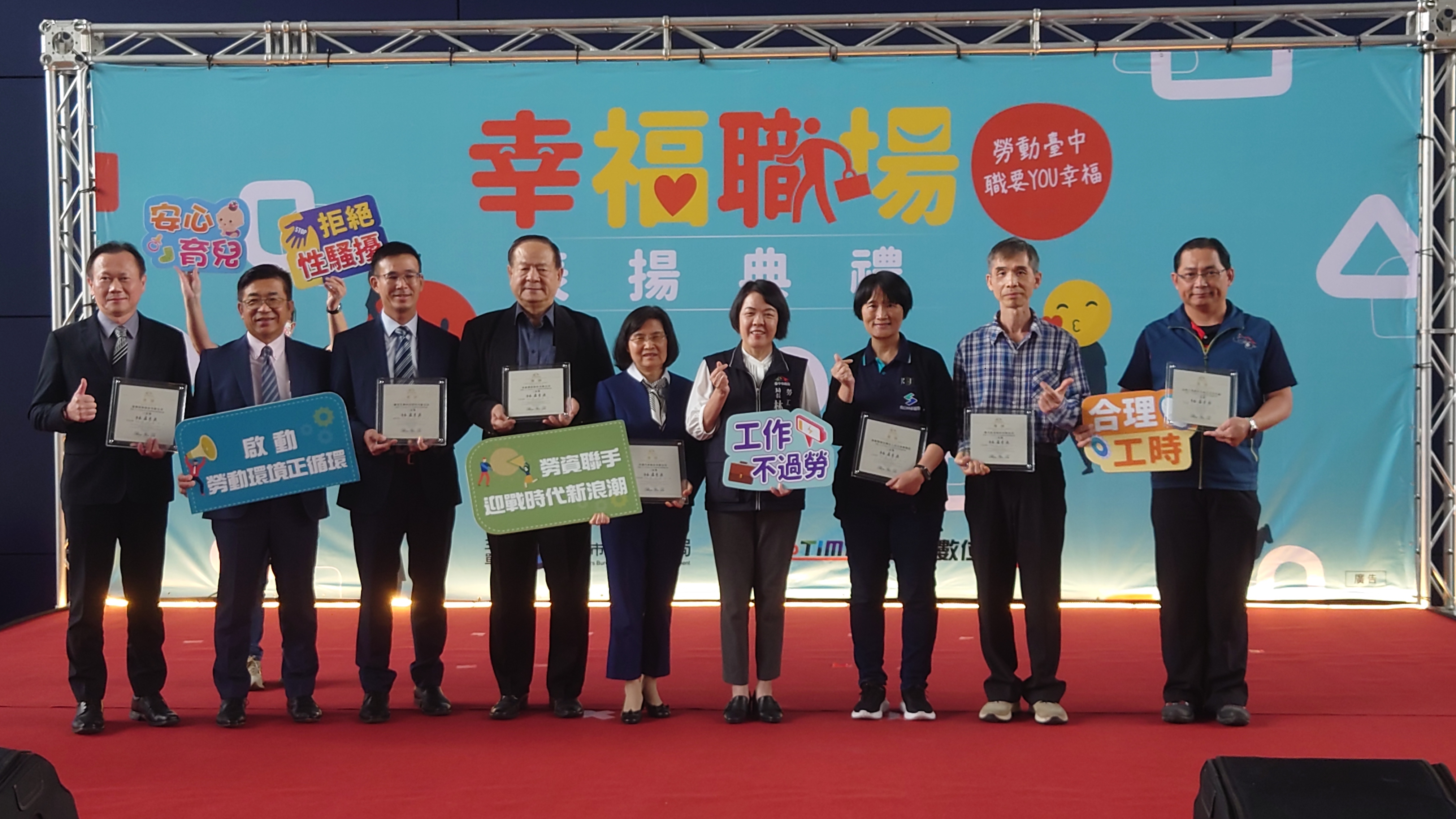 台中市政府勞工局持續推動「幸福職場評選活動」,致力於構築安心、幸福、共榮的勞動環境,今年度幸福職場評選結果揭曉,共有47家優質事業單位脫穎而出,中市政府今(28)日於市府四樓川堂舉辦幸福職場表揚典禮,由勞工局長林淑媛親自頒獎表揚,並頒發總價值36萬元的公益性獎品,肯定這些企業在優化職場環境上的卓越表現