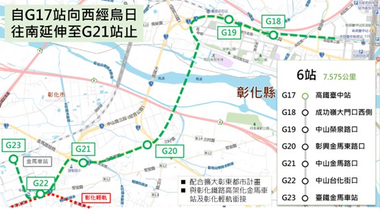 捷運綠線延伸大坑、彰化段全路線示意圖
