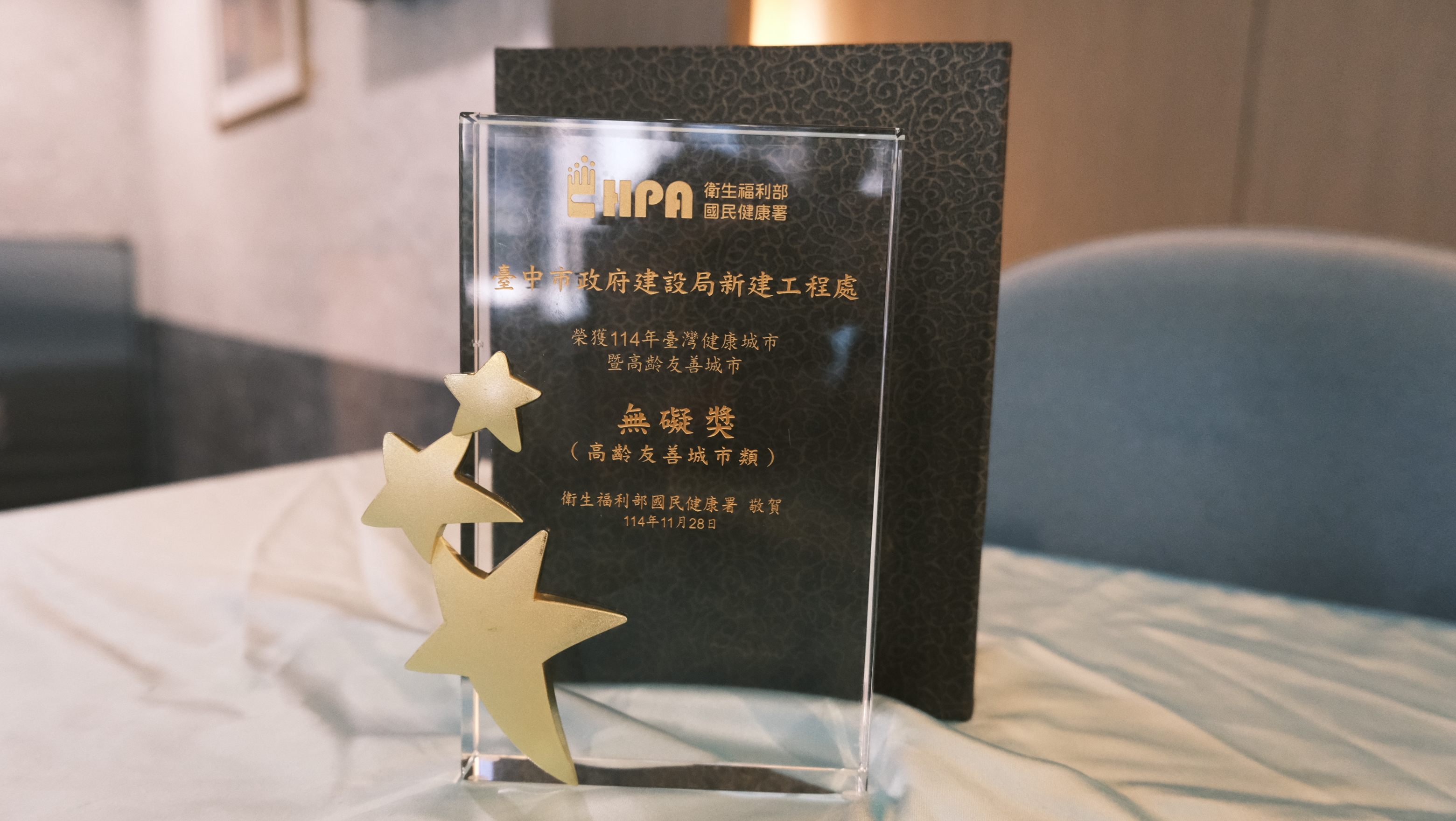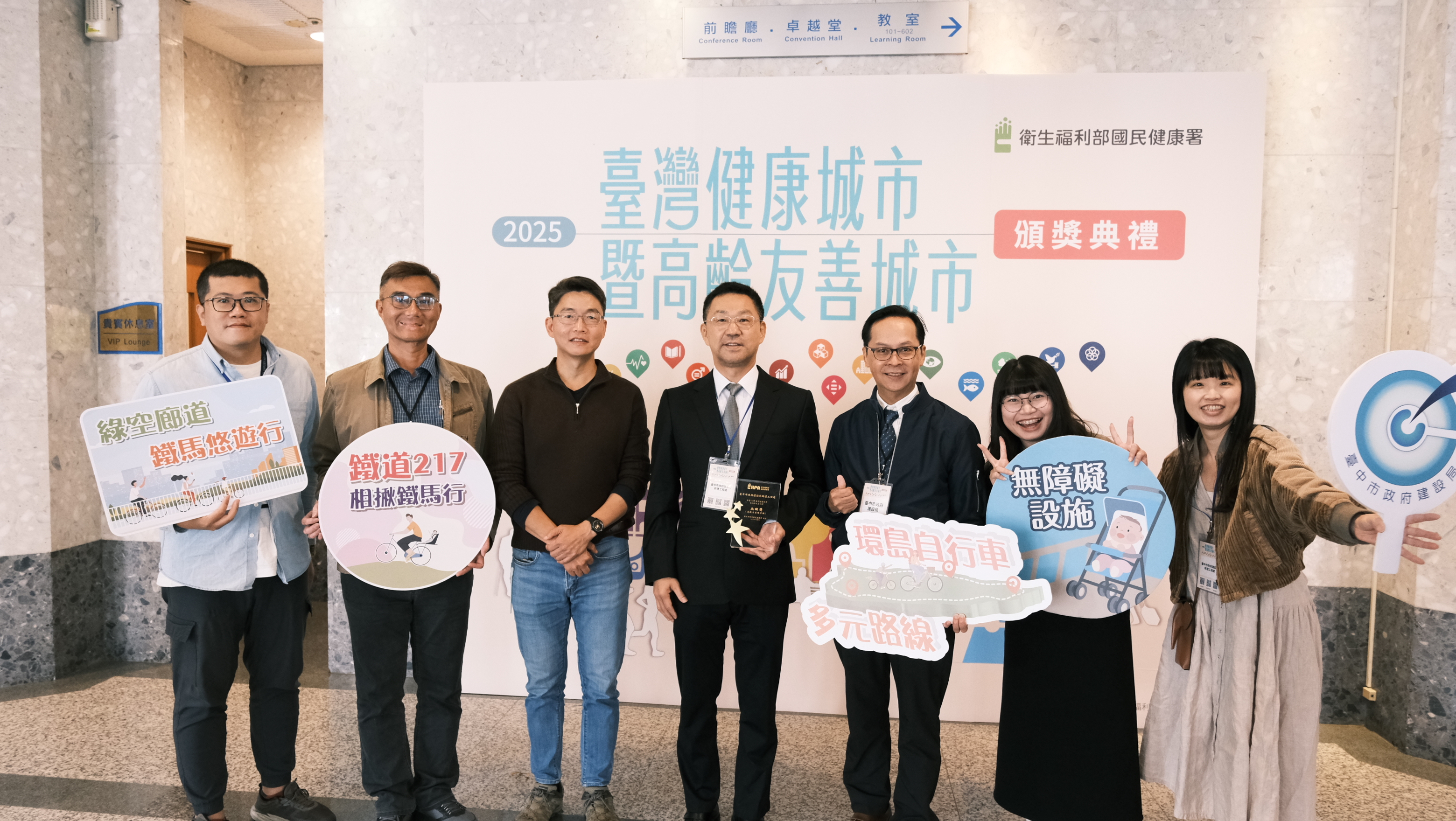 台中市長盧秀燕上任以來,秉持「以人為本、友善宜居」的施政理念,積極推動公共空間再生,打造安全、無礙、全民共享的都市環境。衛生福利部國民健康署日前公布「114年台灣健康城市暨高齡友善城市獎」得獎名單,市府建設局以「綠空廊道串聯21.7公里-打通你我的無礙生活」勇奪高齡友善城市類「無礙獎」,並創下連續四年獲獎的佳績,今(28)日衛生福利部國民健康署舉辦頒獎典禮,建設局由副局長陳永欣代表局長陳大田出席受獎,再次展現台中在無障礙設計與健康城市建設上的領航地位。