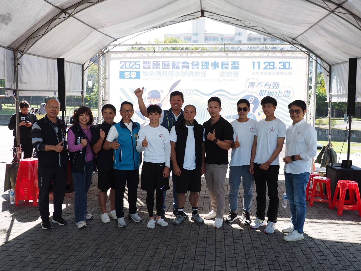 今日活動邀請市議員陳清龍、運動局副局長謝明儒、豐原區長洪峰明、中華民國輕艇協會副理事長林婉如、中華民國輕艇協會輕艇水球委員會主委劉仕飛、台中市身心障礙體育總會秘書長陳薇任、豐原區體育會總幹事吳志強、葫蘆墩促進會理事長連小華、彰化縣媽厝國小校長楊惠如等人到場共襄盛舉;立委何欣純、市議員邱愛珊與陳本添也派代表到場支持,現場氣氛熱烈,展現台中水域運動蓬勃發展的活力。