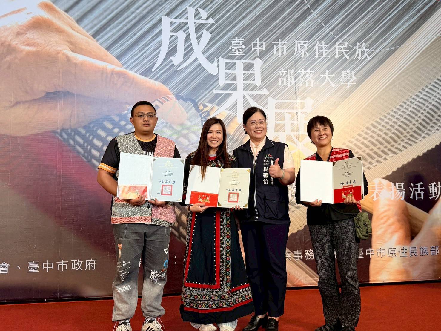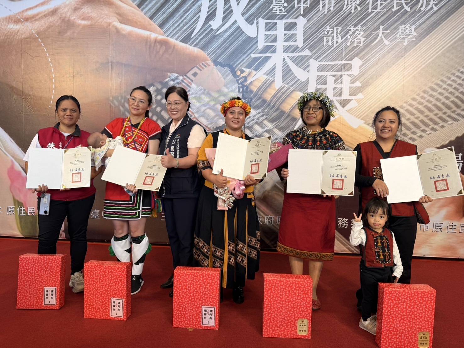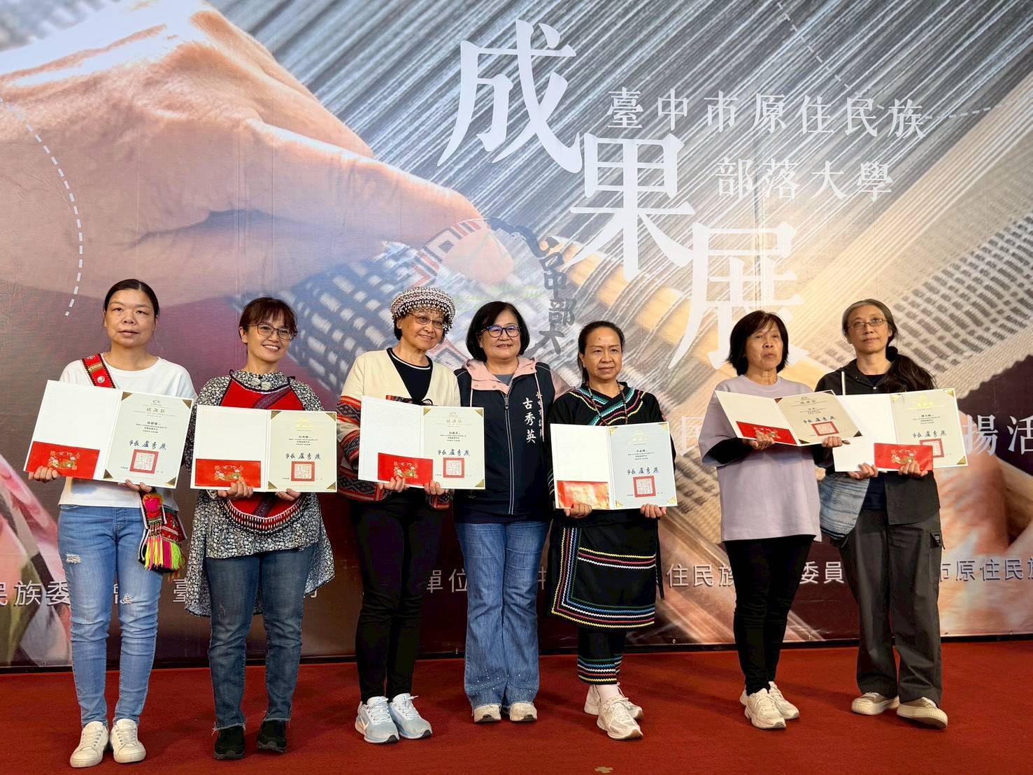 台中市政府原住民族事務委員會今(29)日在原民會一樓大廳舉辦「台中市原住民族部落大學成果展暨原住民族語傳承表揚活動」,由原民會主任委員楊馨怡代表市長盧秀燕出席,與近 200 位講師、學員、族語保母與志工齊聚,共同見證一年來在文化教育與語言復振上的豐碩成果。部落大學自 100 年成立以來,已成為台中推動原住民族文化教育的重要基地,課程累積逾一萬人次參與,並培育超過 250 位講師,是本市多元文化扎根最重要的力量之一。