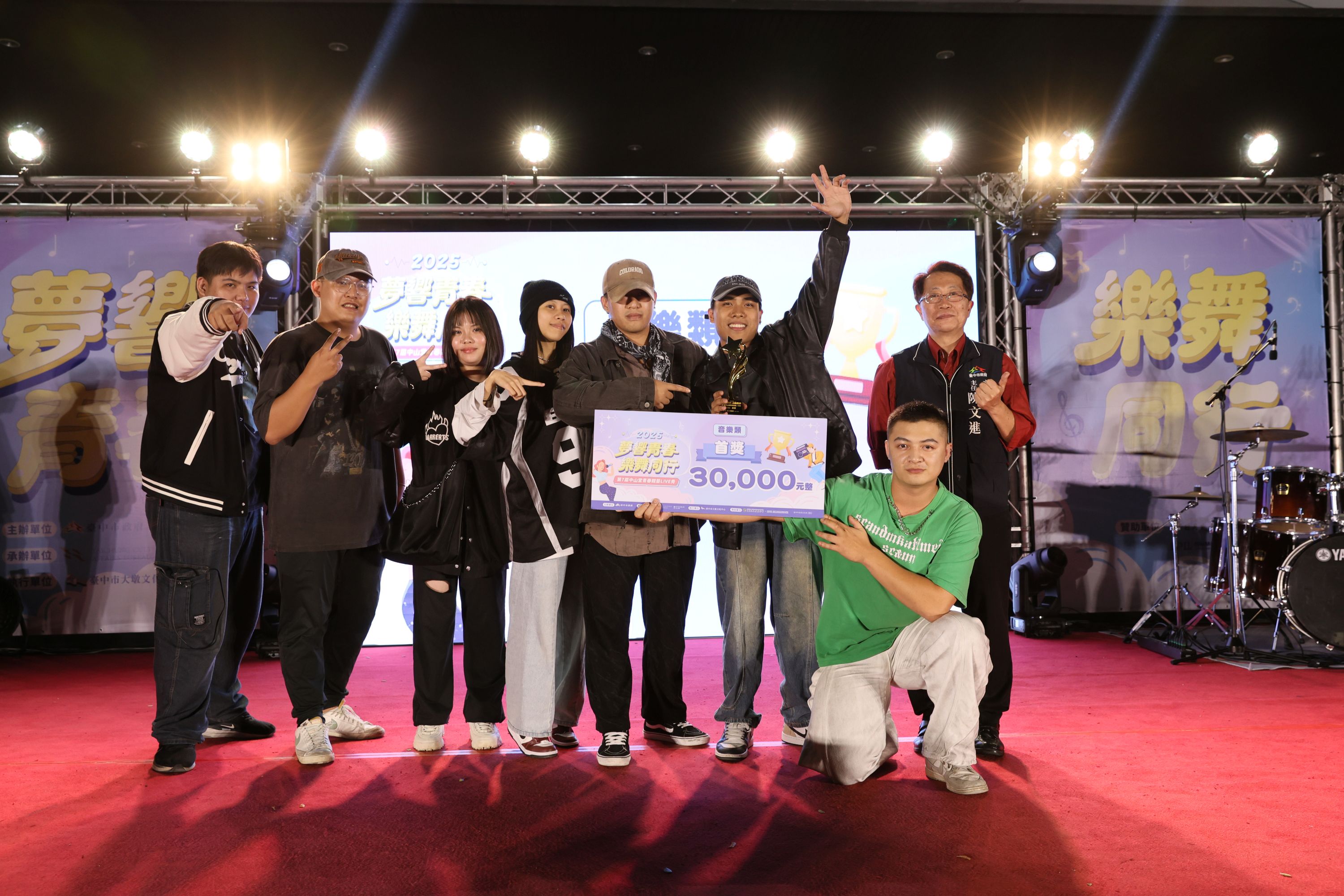 大墩文化中心指出,今年決賽競爭格外激烈,各組隊伍皆展現高度完成度與亮眼特色,不論在舞台魅力、造型風格、服裝呈現到整體舞台氛圍營造,都展現出亮眼的統一性與藝術性,充分體現青年世代的創意火花與無限可能。經專業評審團審慎評選後,舞蹈類首獎由多校組合「萌世代」奪下,評審團獎由多校組合「Shudaboll」脫穎而出;最佳創意獎、最佳造型獎及最佳人氣獎則分別由樹德家商「樹德女力」、多校組合「水煮蛋1.5」、多校組合「萌世代」抱回獎項。