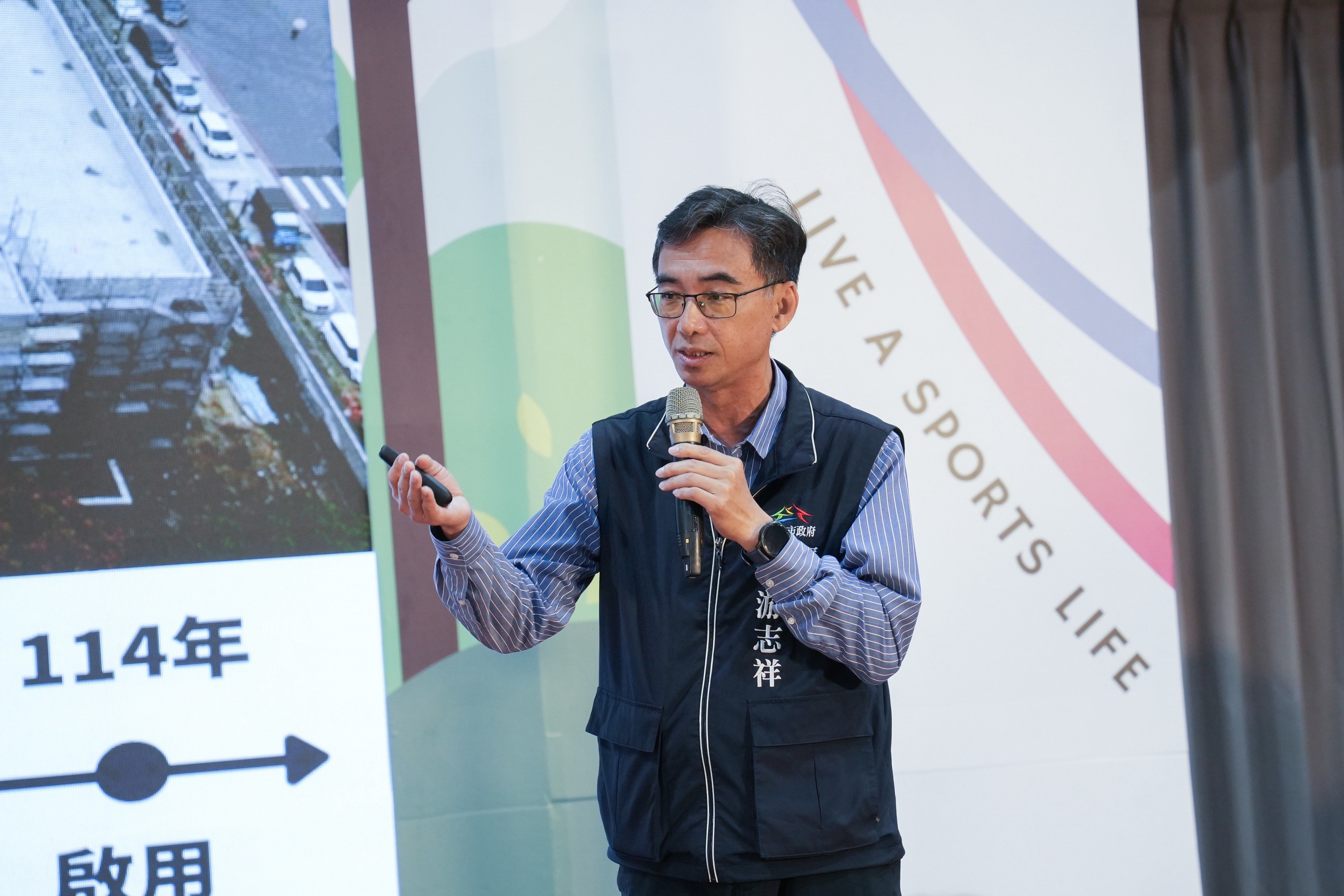 運動局長游志祥說明,場館興建為地上4層建築,設施多元齊全,1樓設有25米、8水道的室內溫水游泳池,並配置蒸氣室、烤箱、SPA池及兒童池;2樓規劃時下最夯的器械皮拉提斯教室、飛輪教室、高空瑜珈教室及專屬兒童運動空間,提供不同年齡層的使用需求運動環境。