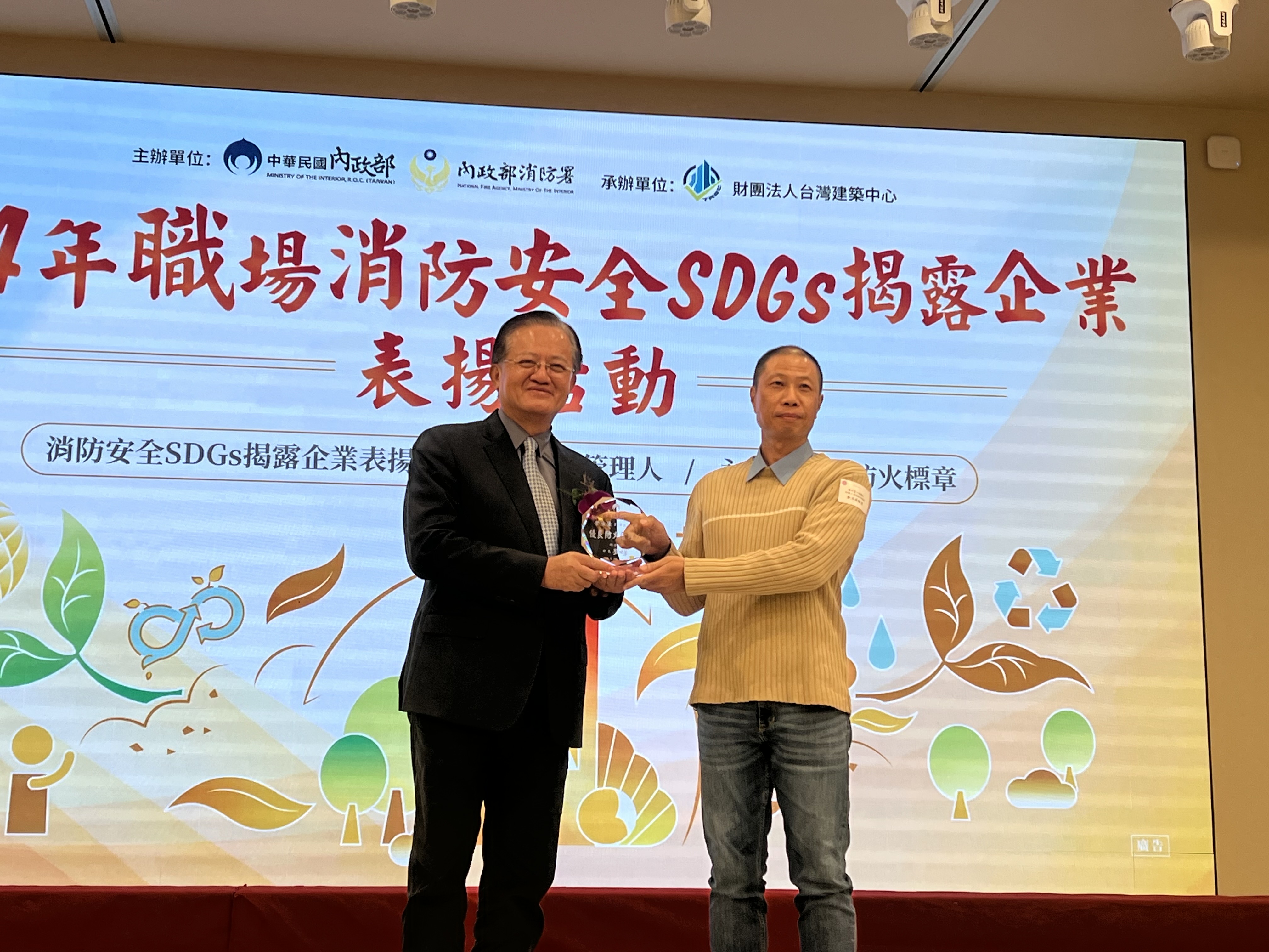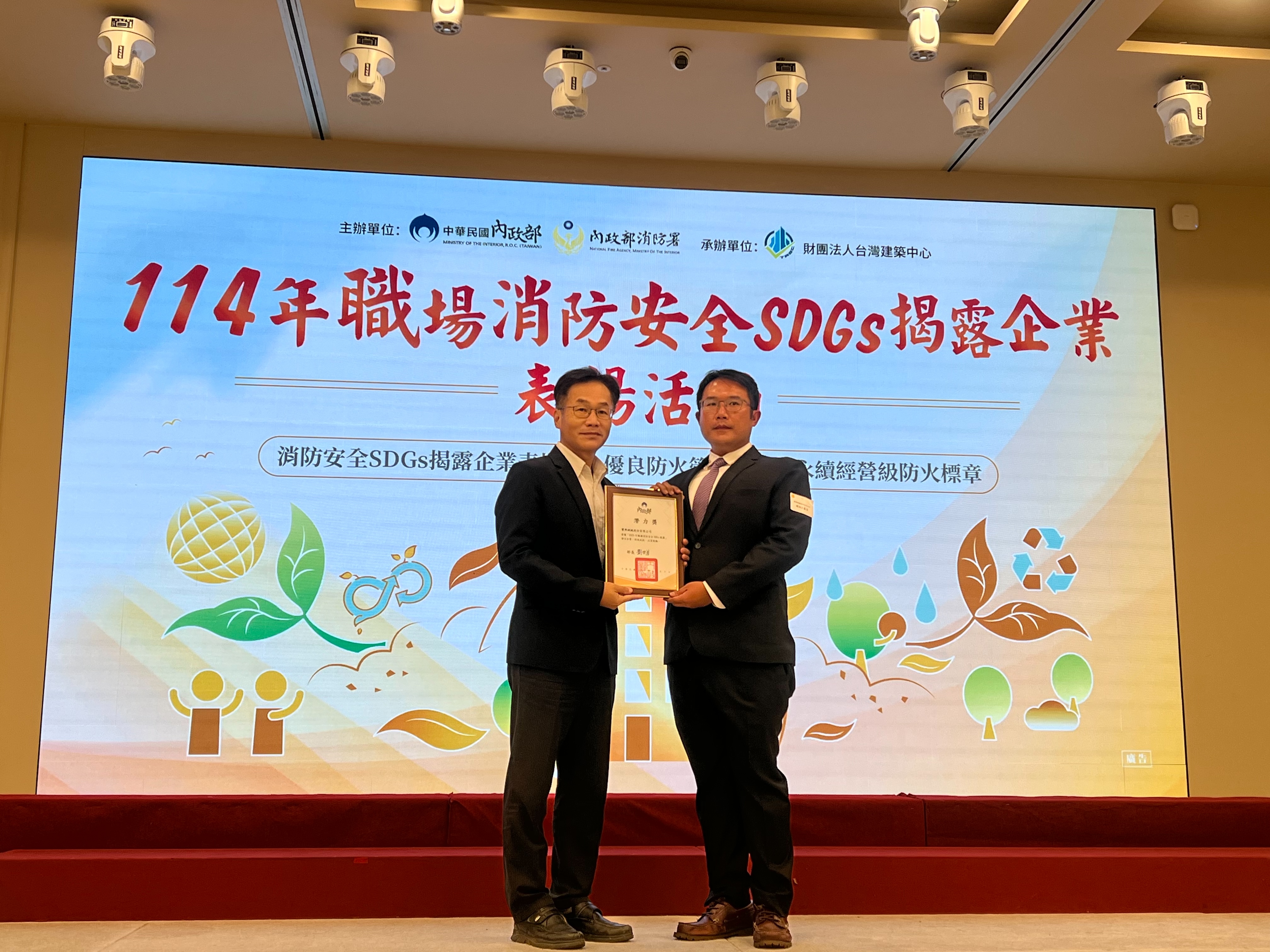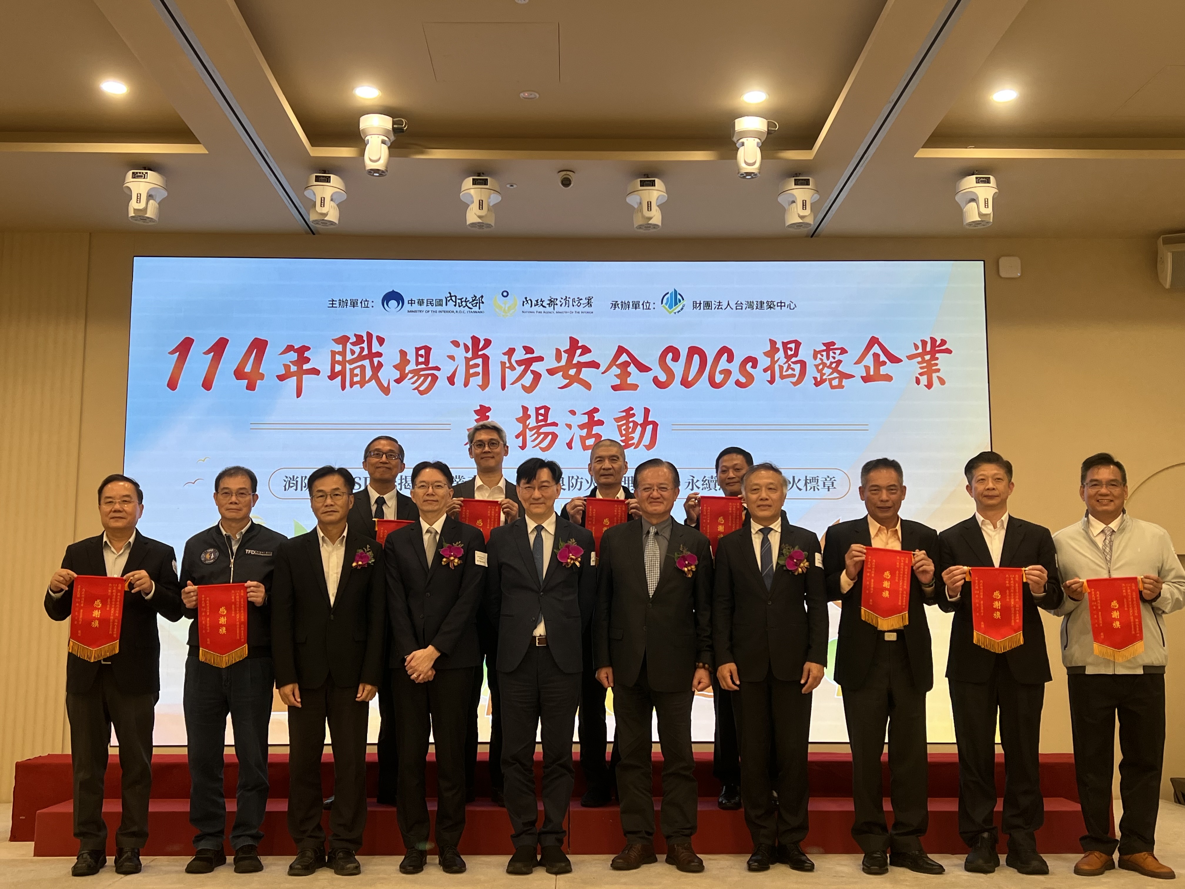 為落實防火管理制度、推動防火意識融入企業文化並激勵防火管理人士氣,內政部消防署與財團法人台灣建築中心昨(3)日舉辦「114年職場消防安全SDGs揭露企業表揚活動」,表彰在消防安全管理揭露及永續減災作為上表現優異的企業與防火管理人,展現我國與國際永續潮流接軌的決心。