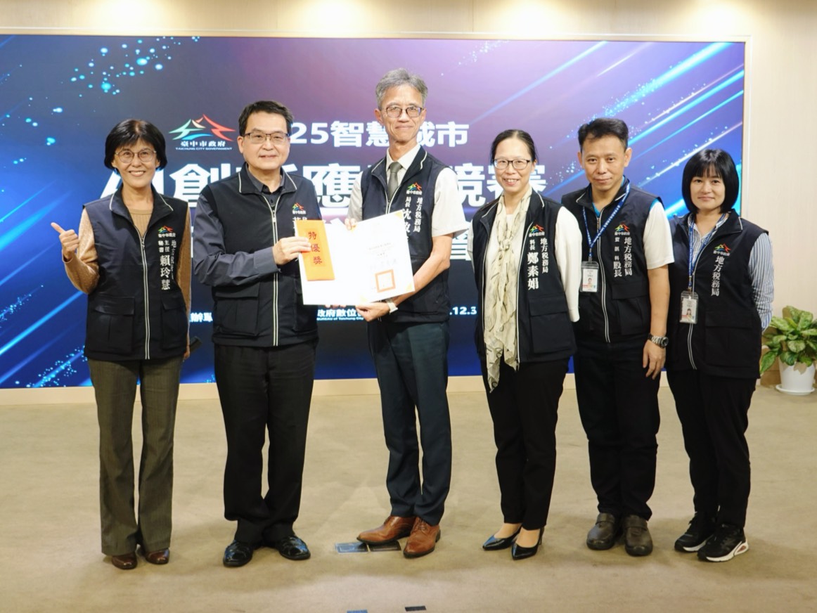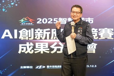 台中推動智慧城市AI創新應用成果亮眼!台中市政府昨(3)日舉辦「智慧城市AI創新應用競賽成果分享會」,共吸引中市府各機關25件提案參賽,經專家評選後有5項優秀AI應用脫穎而出,並由獲獎局處團隊分享實際成果,展現市府在AI治理上的創新能量與跨域合作成果,為台中智慧城市發展注入全新動能。