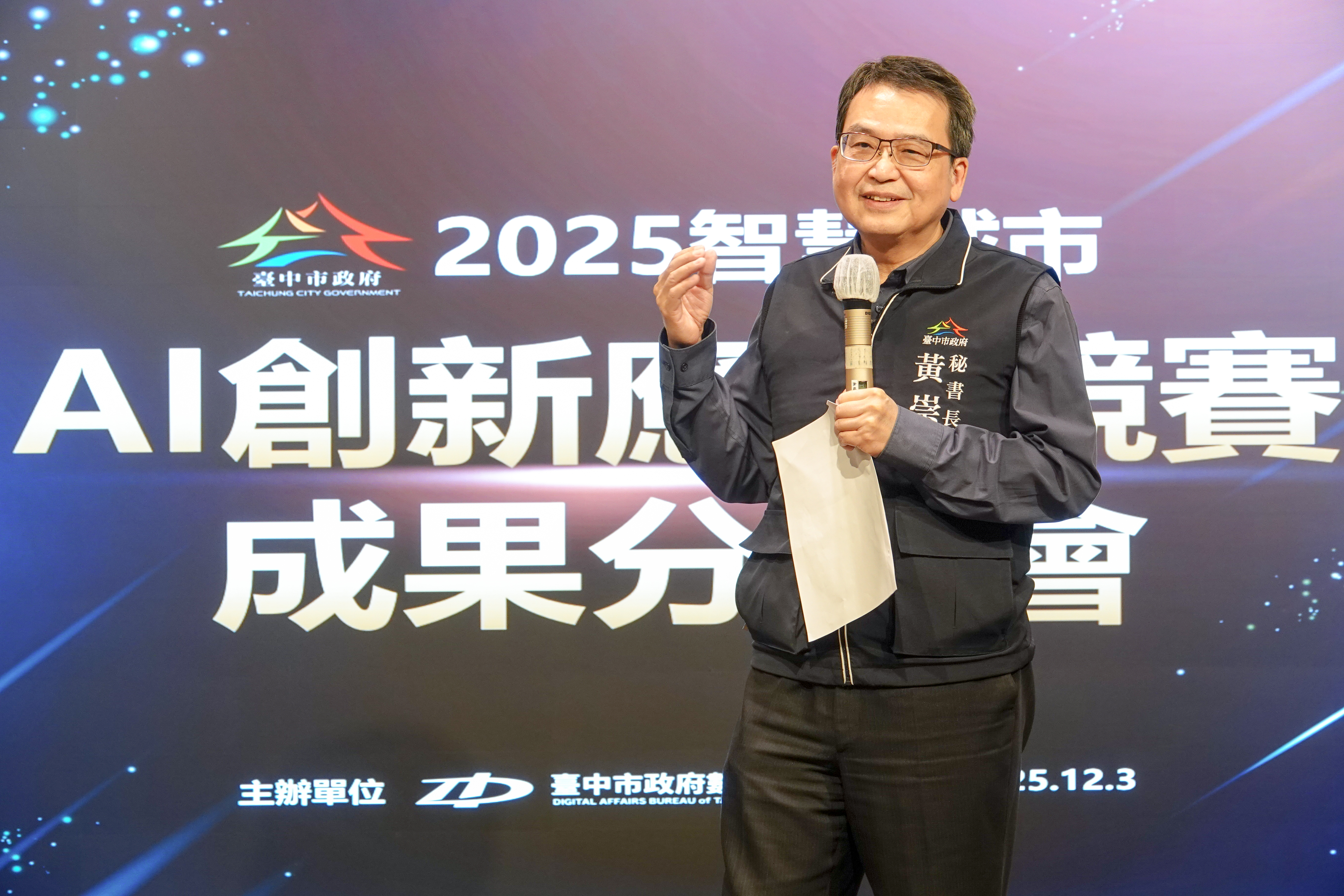 台中市政府祕書長黃崇典表示,市長盧秀燕高度重視AI新興科技在市政領域的應用,不僅率領市府高階主管參加「生成式AI首長班」,更要求各局處導入AI解決市政痛點、提升市民服務。