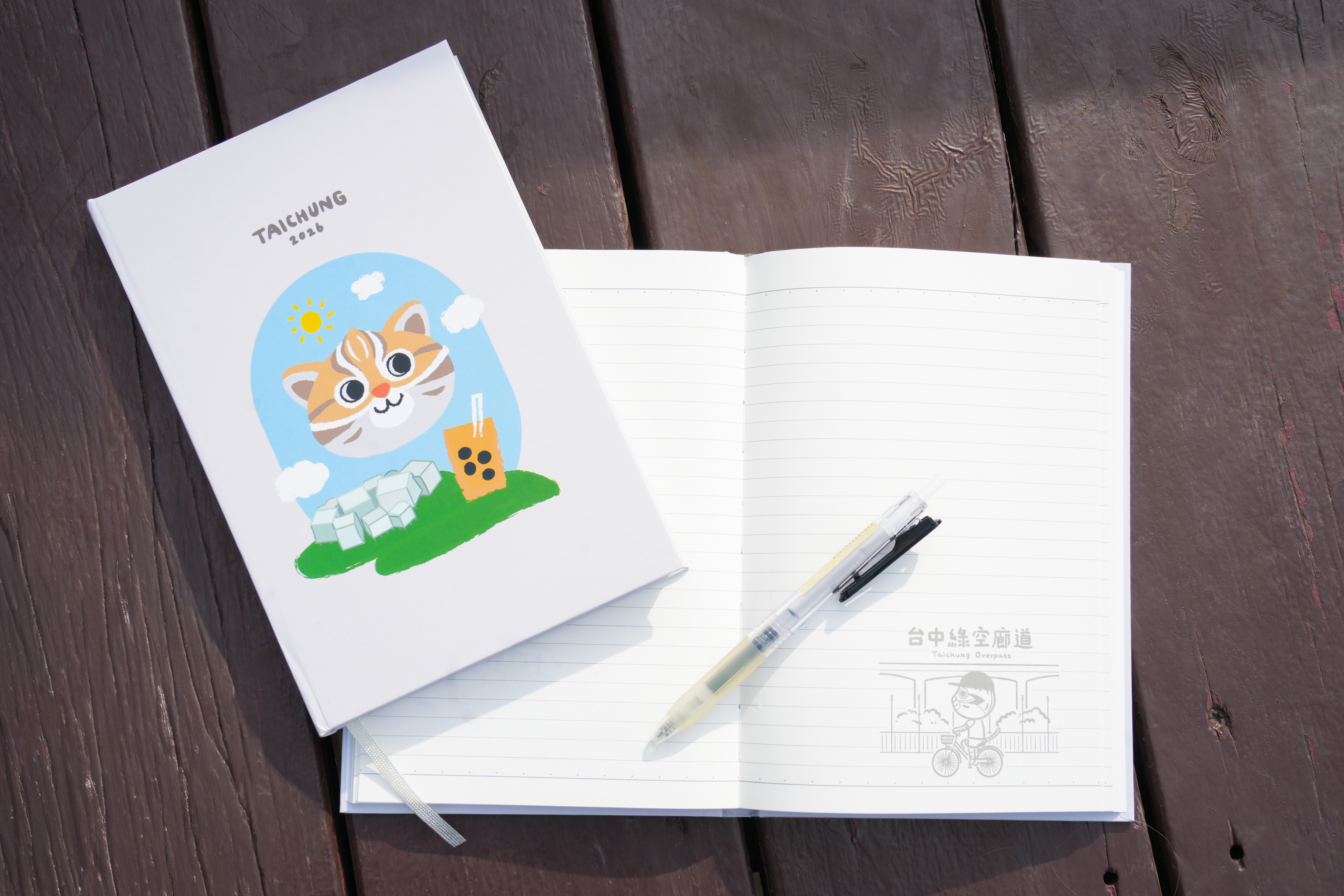 台中市政府新聞局表示,一翻開《2026記事手札》,書名頁上就能看到「來虎」在草地上野餐、閱讀的可愛模樣,呼應台中年度盛事「市民野餐日」。內頁照片為7款台中重大建設,包括台中綠美圖、台中國際會展中心、台中巨蛋、綠空廊道、黃金大道、台中海洋館以及中央公園飛行美樂地遊戲場,讓市民朋友記事時也能看見城市發展亮點。