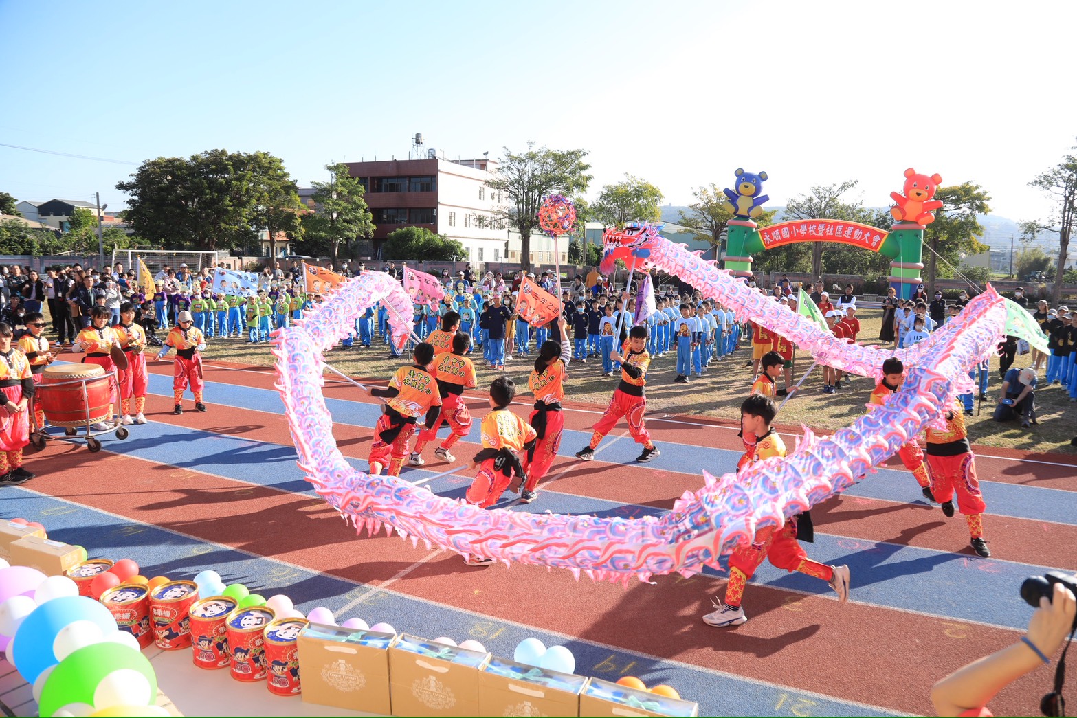 台中市大肚區永順國小60 週年校慶今(6)日熱鬧登場,市長盧秀燕與教育局長蔣偉民親自到場祝賀,與全校師生共同歡慶 60 週年校慶;學校師生準備創意十足的運動員進場,還邀請龍隊表演,呈現滿滿的活力與朝氣,現場氣氛熱鬧!