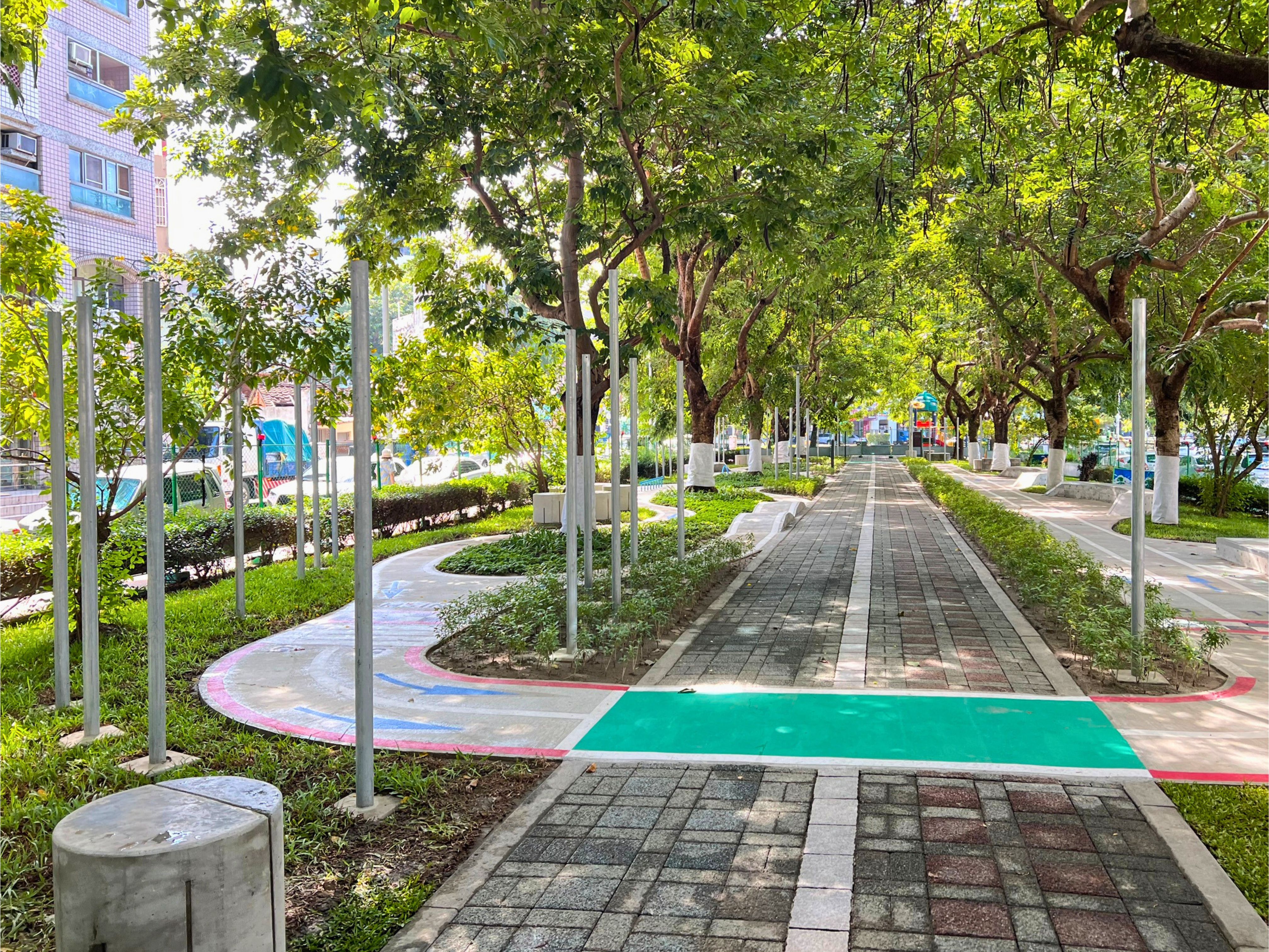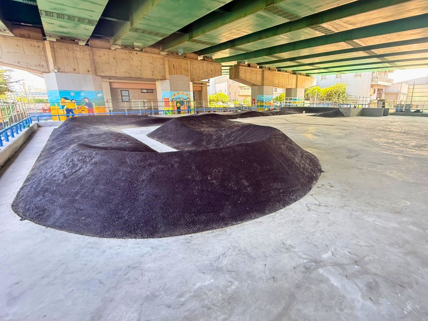 另外,西屯區廣福陸橋下的親子滑板場則充分利用遮陽、避雨的優勢,將原本就吸引滑板愛好者聚集的空地重新整理得更安全、友善。無論晴雨、放學後或假日,都能看到青少年朋友們、親子家庭在這裡磨練技巧、彼此交流,讓橋下空間更具活力,也成為鄰里日常生活中熟悉的運動景象。
