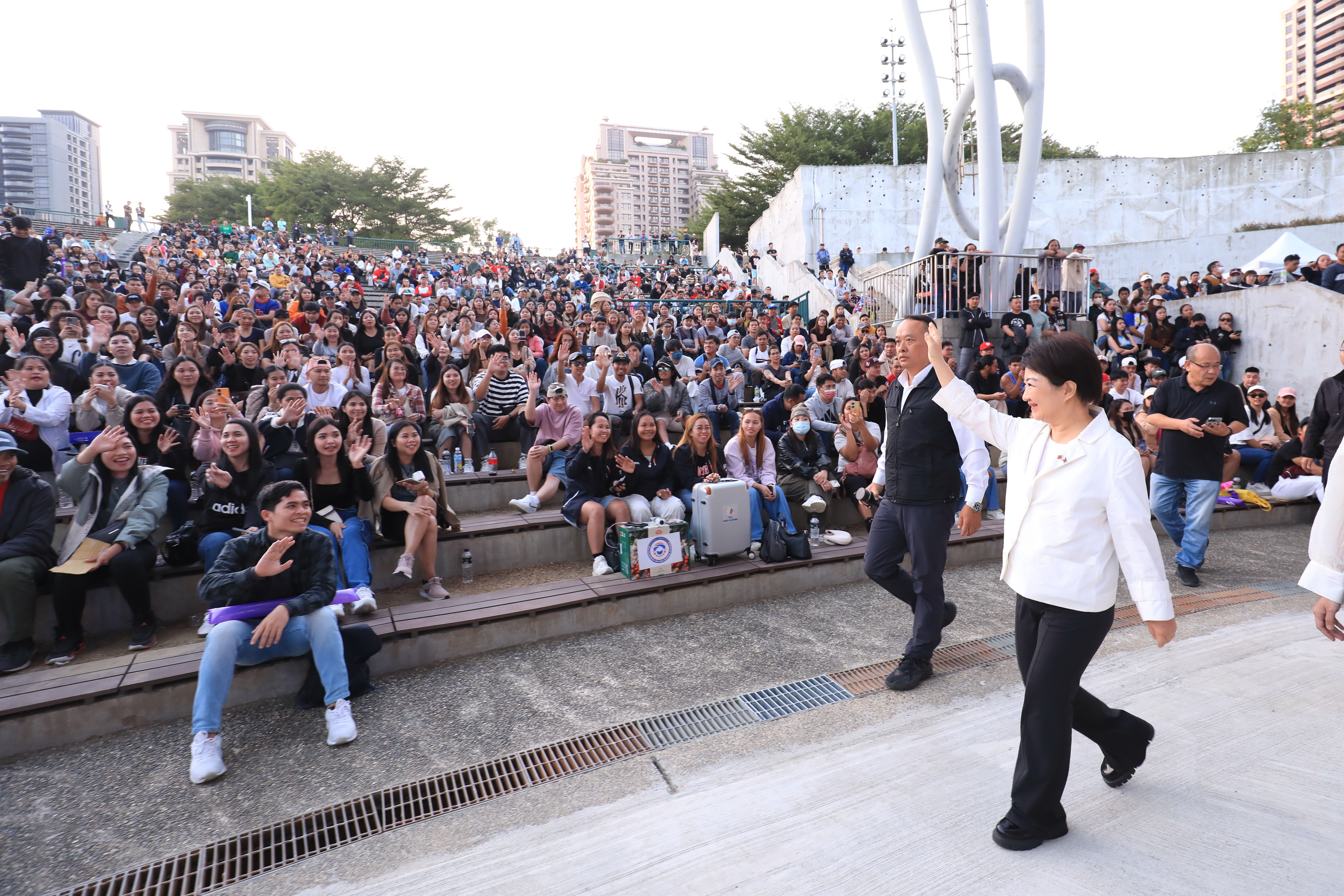 台中市政府與馬尼拉經濟文化辦事處今(7)日下午在圓滿戶外劇場共同舉辦2025菲律賓聖誕節(2025 Paskong Pinoy),現場邀請多位菲律賓知名藝人登台及舉辦抽獎活動,吸引全台近三千位菲國僑民共襄盛舉,台中市長盧秀燕、馬尼拉經濟文化辦事處駐台主席兼代表彭科蓉(Representative Mrs. Corazon A. Padiernos)也到場共度歡樂節慶,現場氣氛熱鬧溫馨。