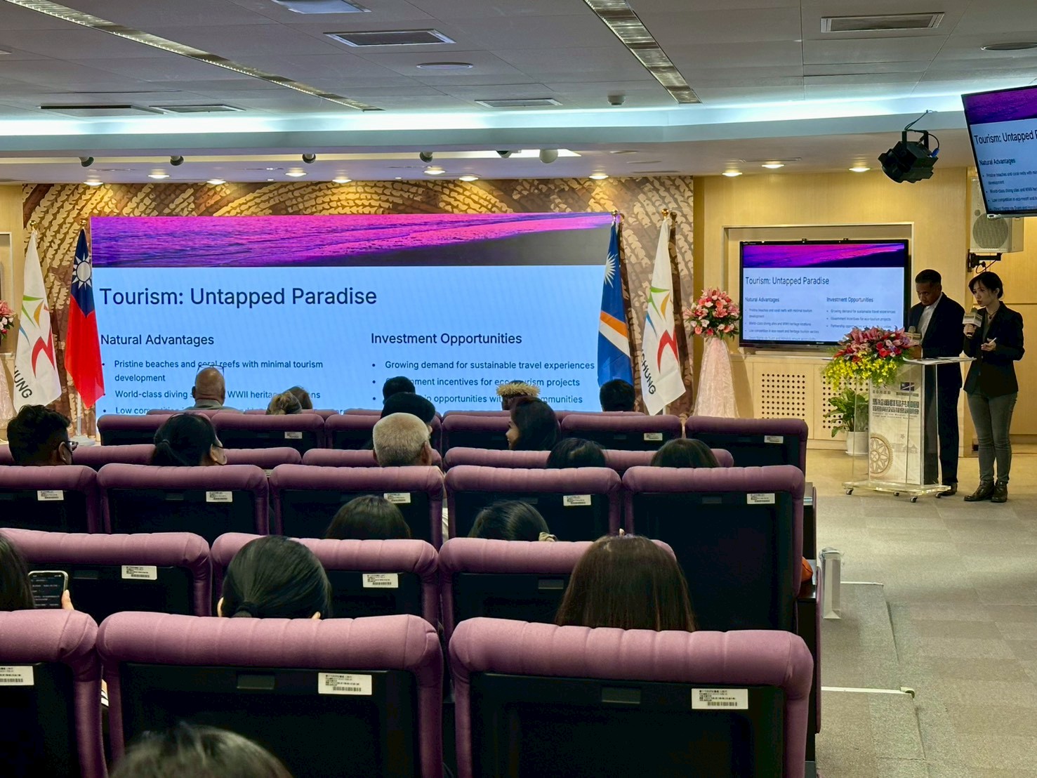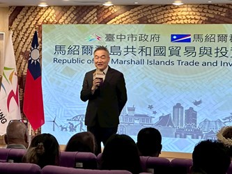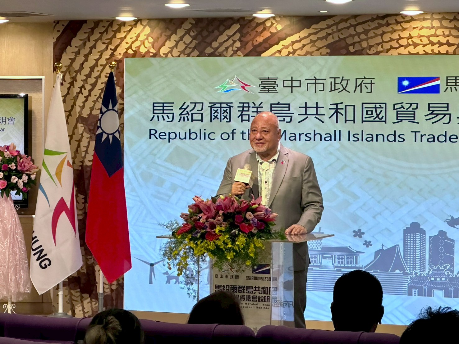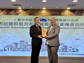 台中市政府與馬紹爾群島共和國共同主辦之「馬紹爾群島貿易與投資機會說明會」,今(9)日上午於台中市政府台中廳舉行。馬紹爾群島自然資源暨商業部穆勒(Tony Muller)部長率領官方與產業代表訪團出席,副市長黃國榮代表市長盧秀燕及在地企業交流,聚焦貿易、觀光、農漁業、建設及投資等領域合作。另響應台中購物節熱潮,同場邀請部長與貴賓抽出「台北—馬紹爾機票」,並熱情邀請幸運得主蔡小姐飛到馬紹爾,體驗當地觀光風情。