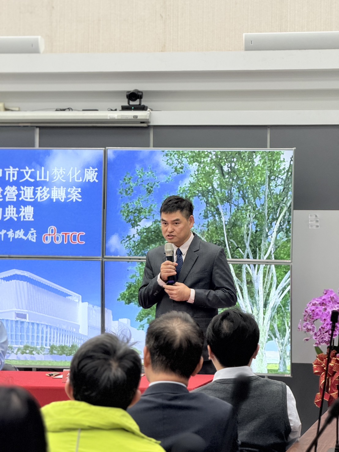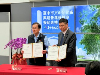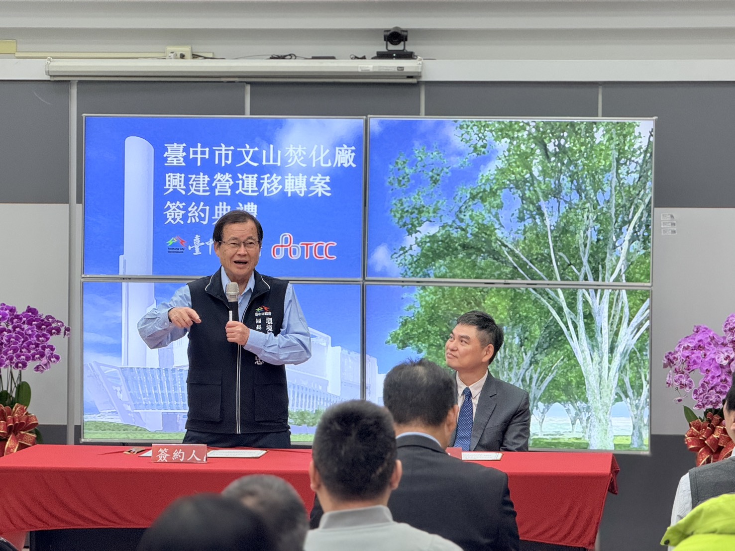 台中市政府推動的「文山焚化廠興建營運移轉(BOT)案」成功招商,今(11)日下午正式完成簽約儀式,由環保局長吳盛忠與台泥文山環保科技股份有限公司董事長蔡立文代表雙方簽署。環保局表示,依計畫進度,新廠預計於115年動工、118年底完工,並在119年正式投入營運。