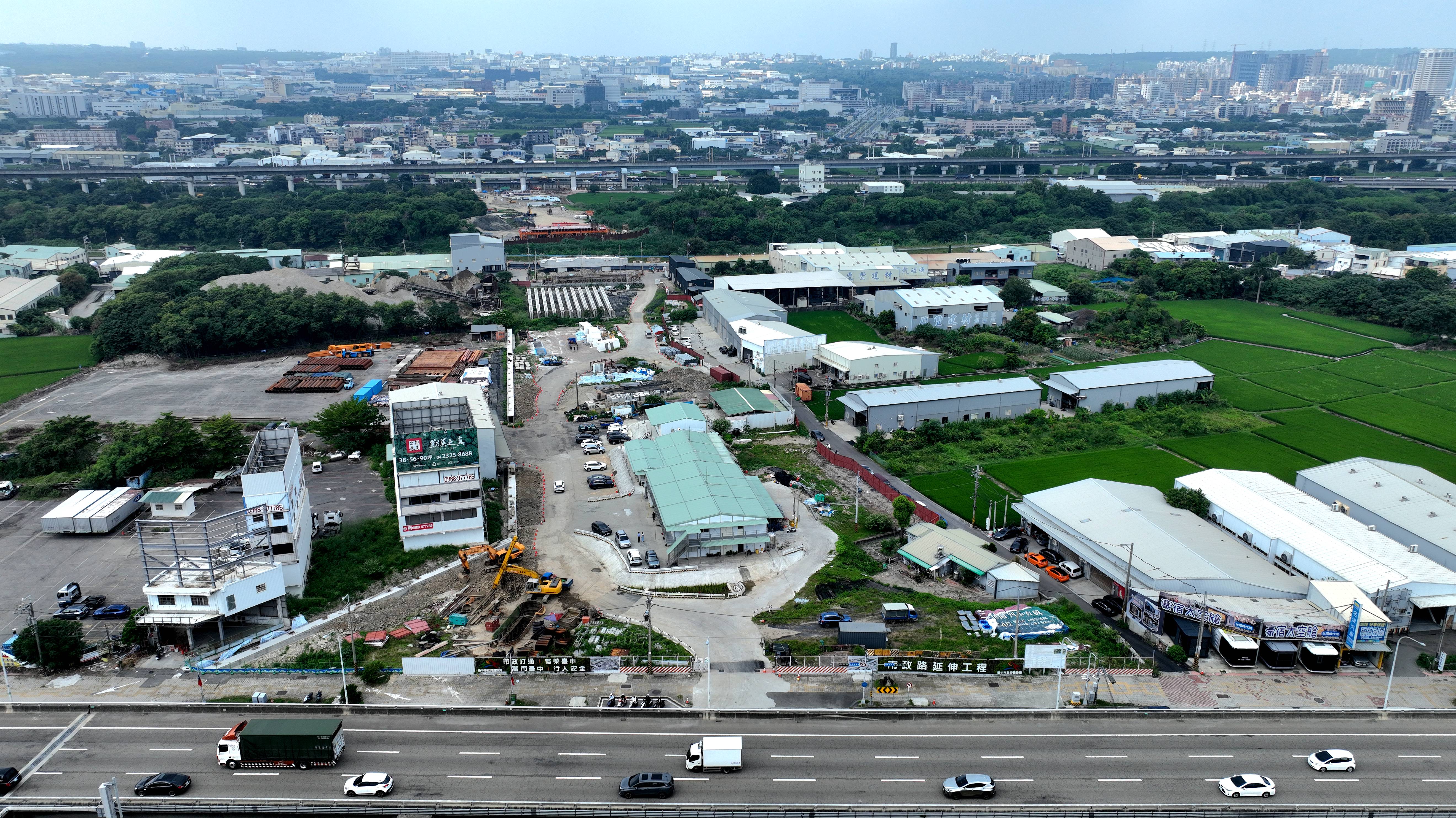 台中市政府建設局指出,「市政路延伸工程」工業區一路至安和路段(第一標)已於5月通車,成功分流台灣大道車潮並展現路網效益;而安和路至環中路段(第二標)需跨越國道、高鐵及筏子溪,施工難度極高,由春原營造公司(佔契約金額73.7%,為契約代表廠商)及萬德營造公司(佔契約金額26.3%)共同承攬。
