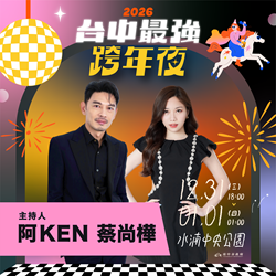 台中跨年晚會去年吸引近50萬人到場,今年卡司同樣豪華,包括蕭敬騰、動力火車、盧廣仲、告五人、麋先生MIXER、TRASH、怕胖團輪番演出,自晚間6時暖場、7時正式開唱,陪伴市民一路嗨到倒數。
