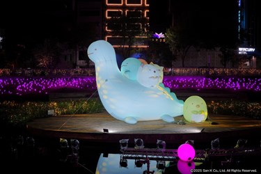此外,呼籲民眾千萬別錯過柳川水舞台,高達5公尺的《角落小夥伴》大型氣膜,將搭配主題水舞燈光秀,每日下午17點30分至21點30分,每隔半小時展演一場。