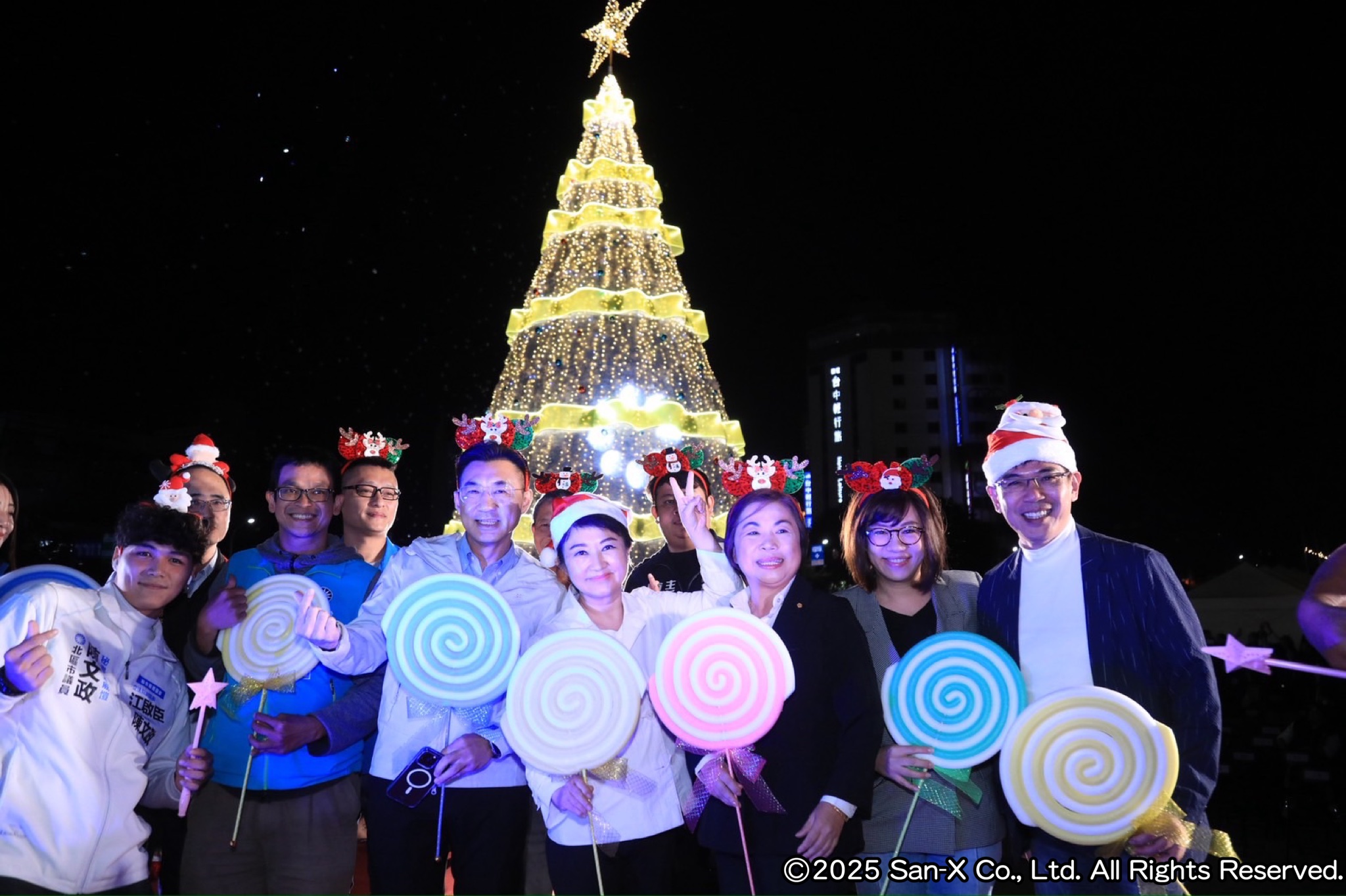2025台中耶誕嘉年華以日本人氣角色IP《角落小夥伴》為主題,在舊火車站前佈置高達18公尺的「耶誕珍甜」耶誕樹,柳綠川沿岸更設置不同主題燈飾,活動未開幕即吸引許多民眾搶拍。台中市長盧秀燕今(12)晚出席點燈儀式,在現場跟民眾一同倒數,時間一到耶誕樹瞬間點亮夜空,宣告嘉年華正式開跑,將一路展至明年元旦,展期歷年最長。