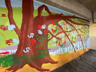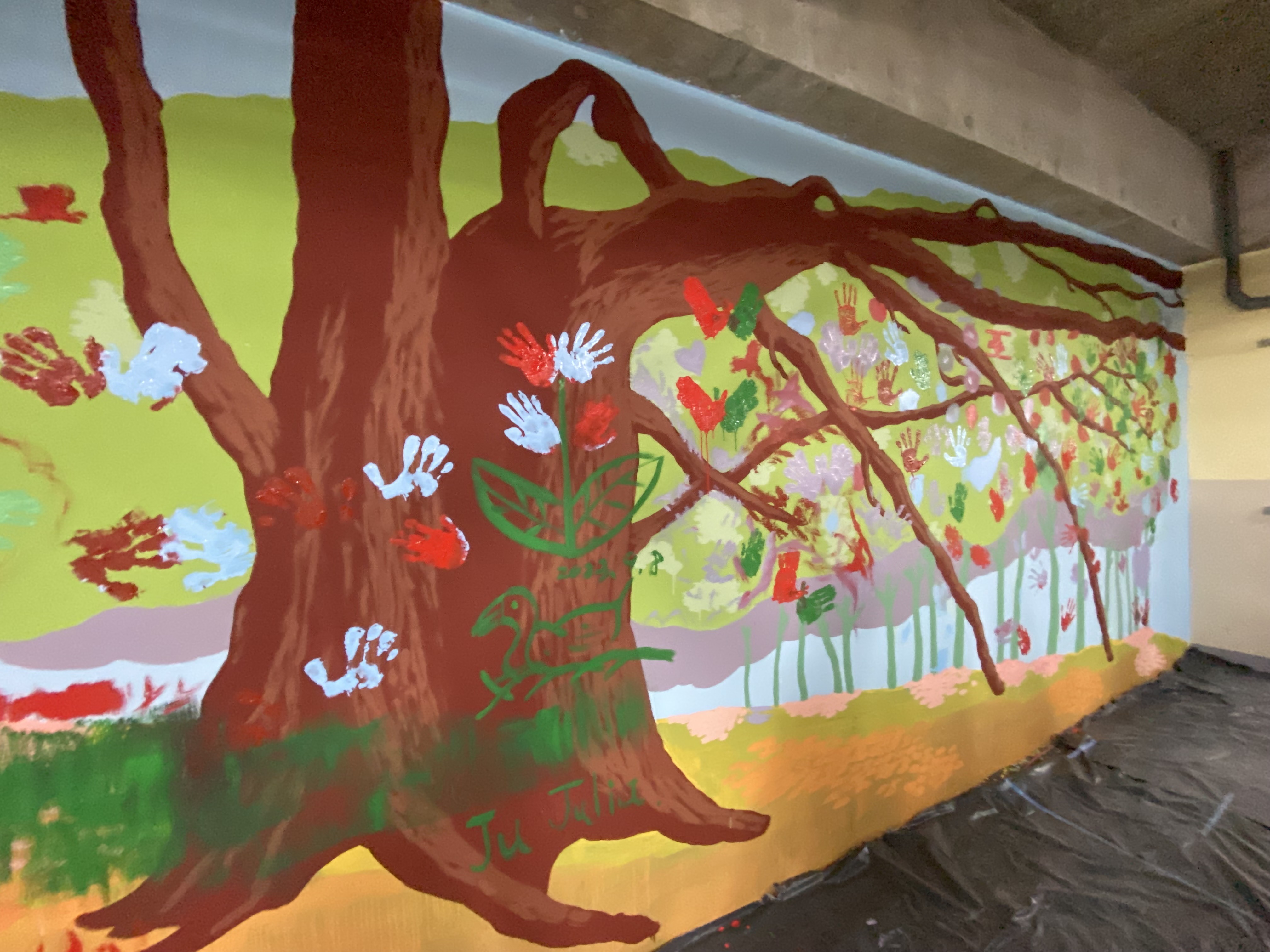 交通局說明,興建停車場除了停車功能,配置公共藝術後也吸引到民眾來遊賞,在全國性公共建設評選時更是大放異彩。獲得2023年公共工程金質獎的南屯區文山停車場,是第23屆唯一獲獎的停車場建案,《躍動之森》和《匯聚.永續》公共藝術代表生態與循環永續,由台中市立啟聰學校學生以「富生命力的高山森林」為主題的牆面彩繪,成為遊戲結合藝術最佳親子景點。