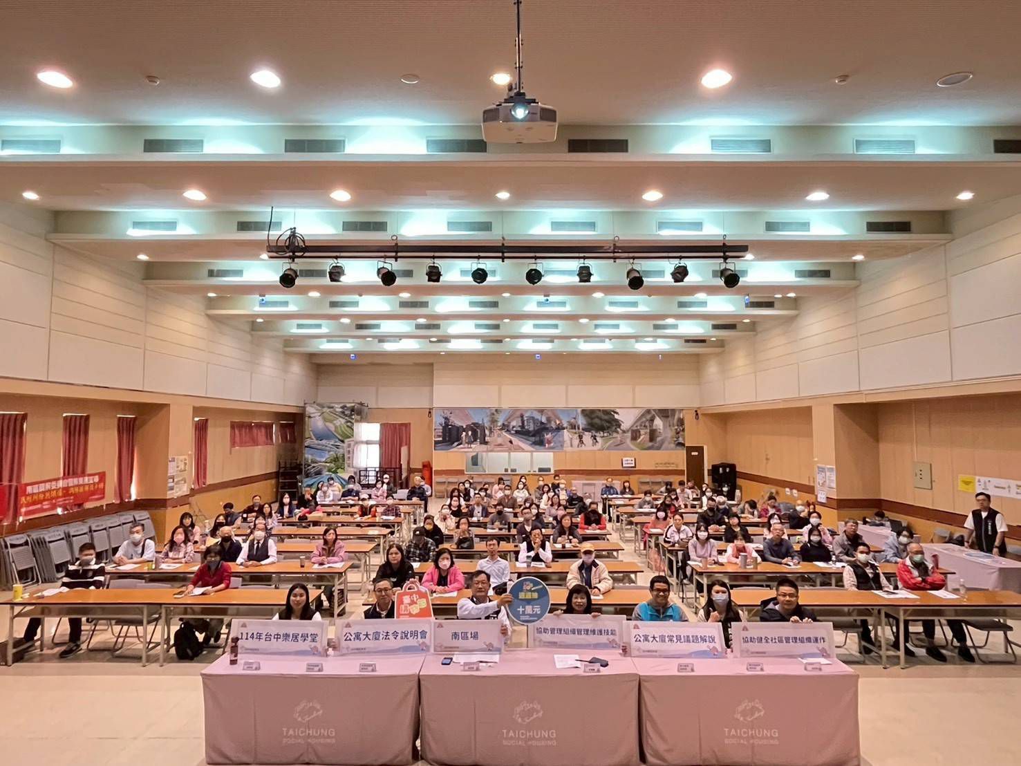 住宅處表示,透過「台中樂居學堂」課程強化社區自治,解決紛爭,建立有效率的社區管理組織,提升社區的凝聚力,各場次課程由專業講師分別針對公寓大廈規約、區分所有權人會議、管理組織事務管理等常見議題及設施設備維護課題進行講授及案例分享。考量社區管理事務的多樣性,活動也分場次邀集市府機關宣導公寓大廈相關法令與政策,如噪音、騎樓違停處理方式、社區消防安檢、公共安全申報及外牆磁磚剝落處理等內容。今年度總計舉辦6場次「台中樂居學堂」,總計吸引近八百名公寓大廈社區管理組織成員、管理服務人員及住戶參與。