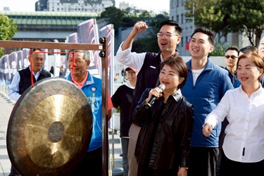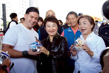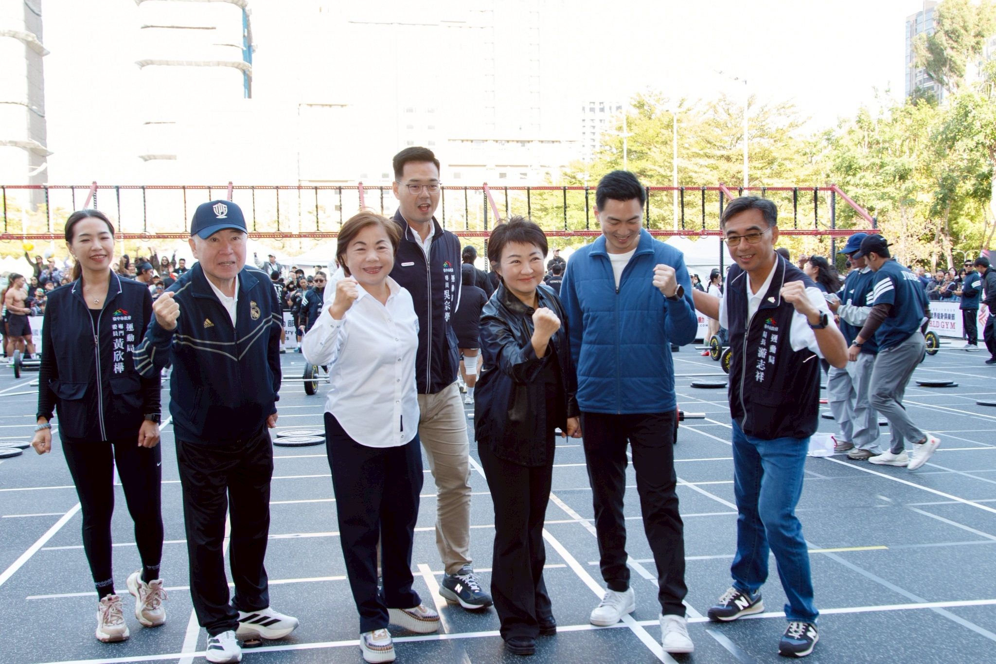 全球極限體能鋼鐵大賽在台中市府廣場持續熱力開戰!今(14)日賽事進入第2天,台中市長盧秀燕下午出席賽事,實際體驗多項運動設施,並前往暖身區近距離為國際選手、明星藝人以及台中最強地主隊加油,更親送幸運物「台中市徽」為台中隊加持。現場氣氛熱烈,展現城市作為國際運動舞台的能量。