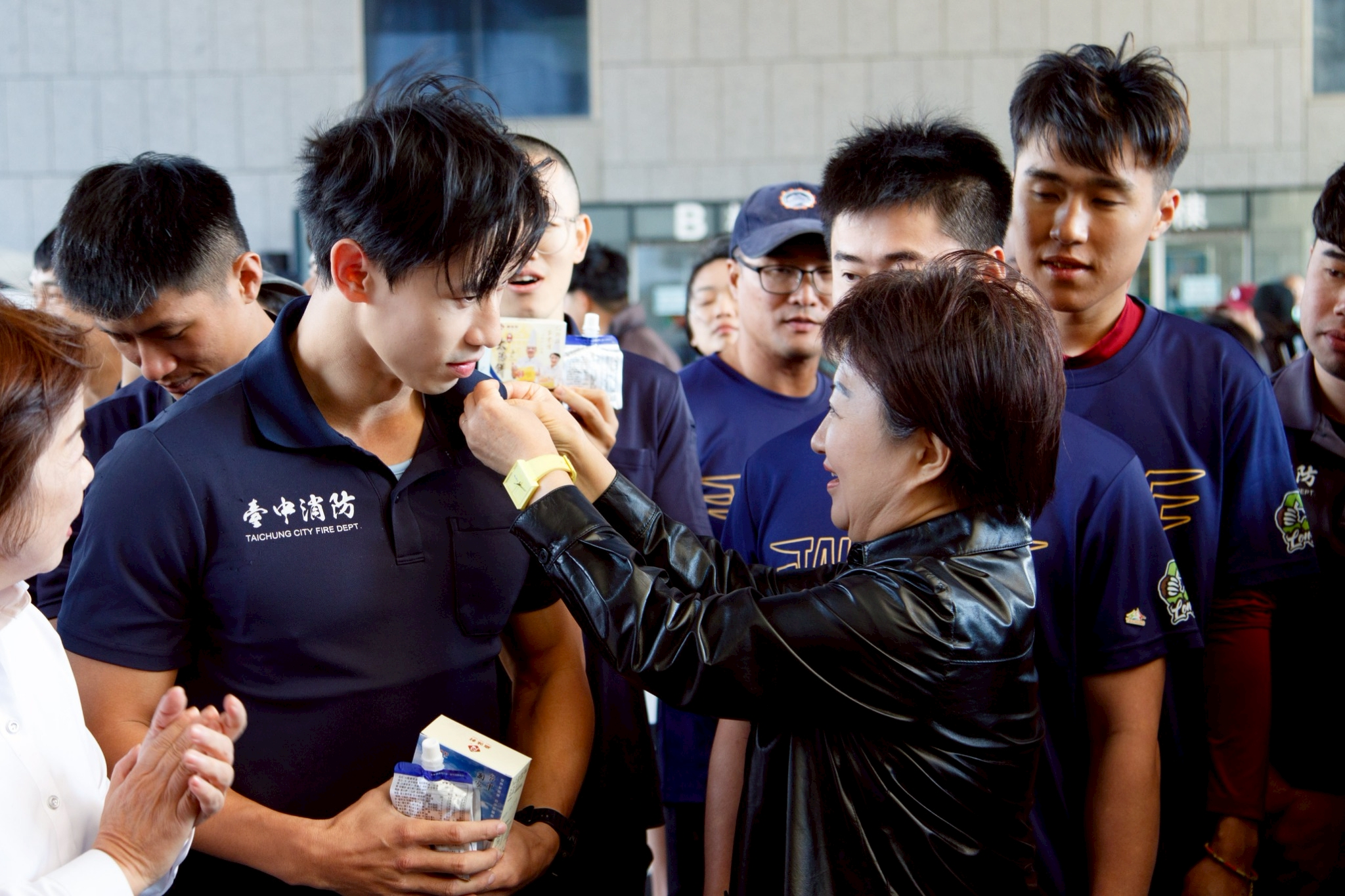 而台中消防局、警察局、環保局及社會局共同組成的地主隊,更是收到盧市長親送的幸運物「台中市徽」作為加持。盧市長為台中隊應援時表示,消防局、警察局、環保局和社會局都是市府的「鋼鐵局」,他們混編組成一個最強地主隊,因為他們平常訓練就很嚴格、很精良,所以我們也很有信心,希望大家加油。