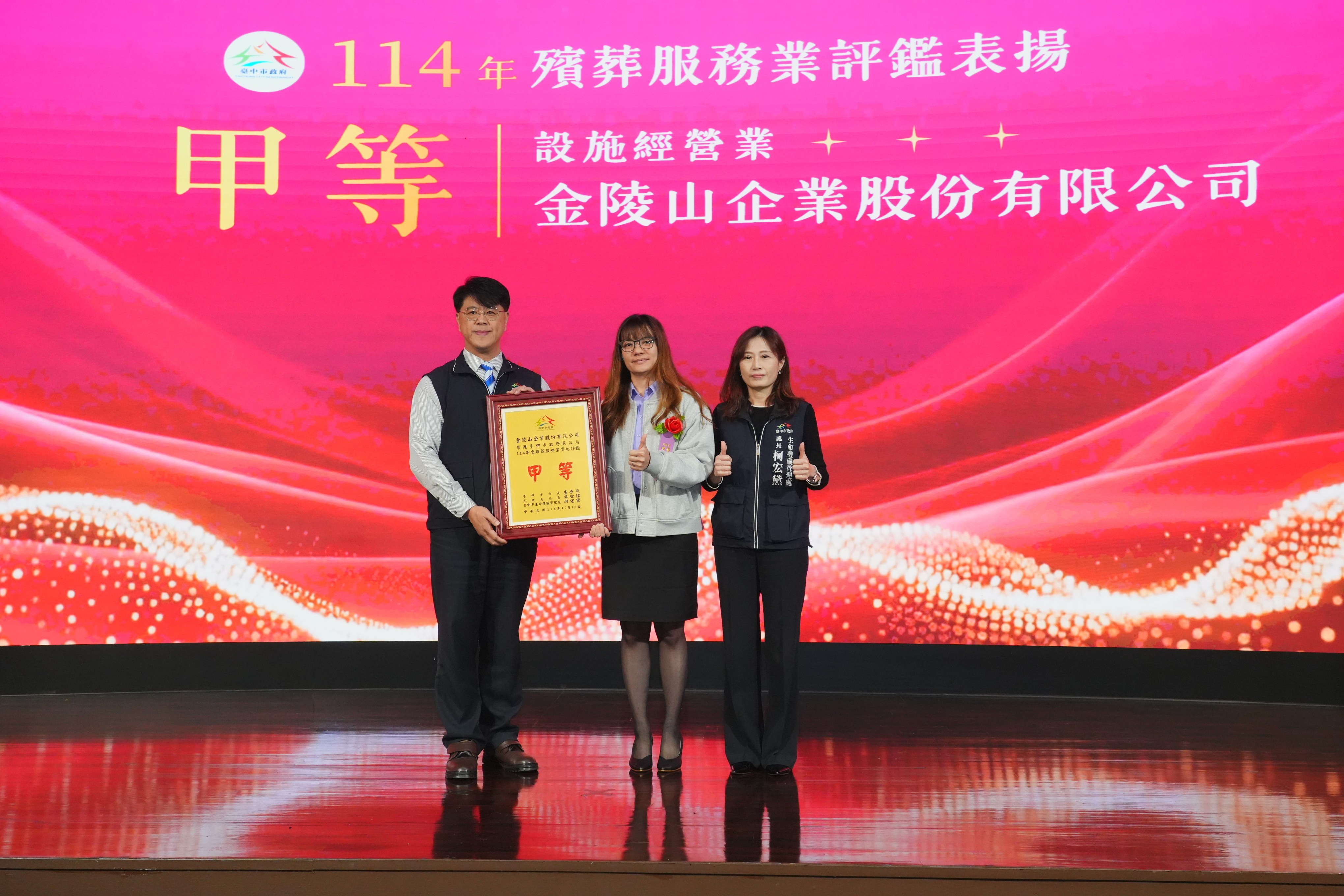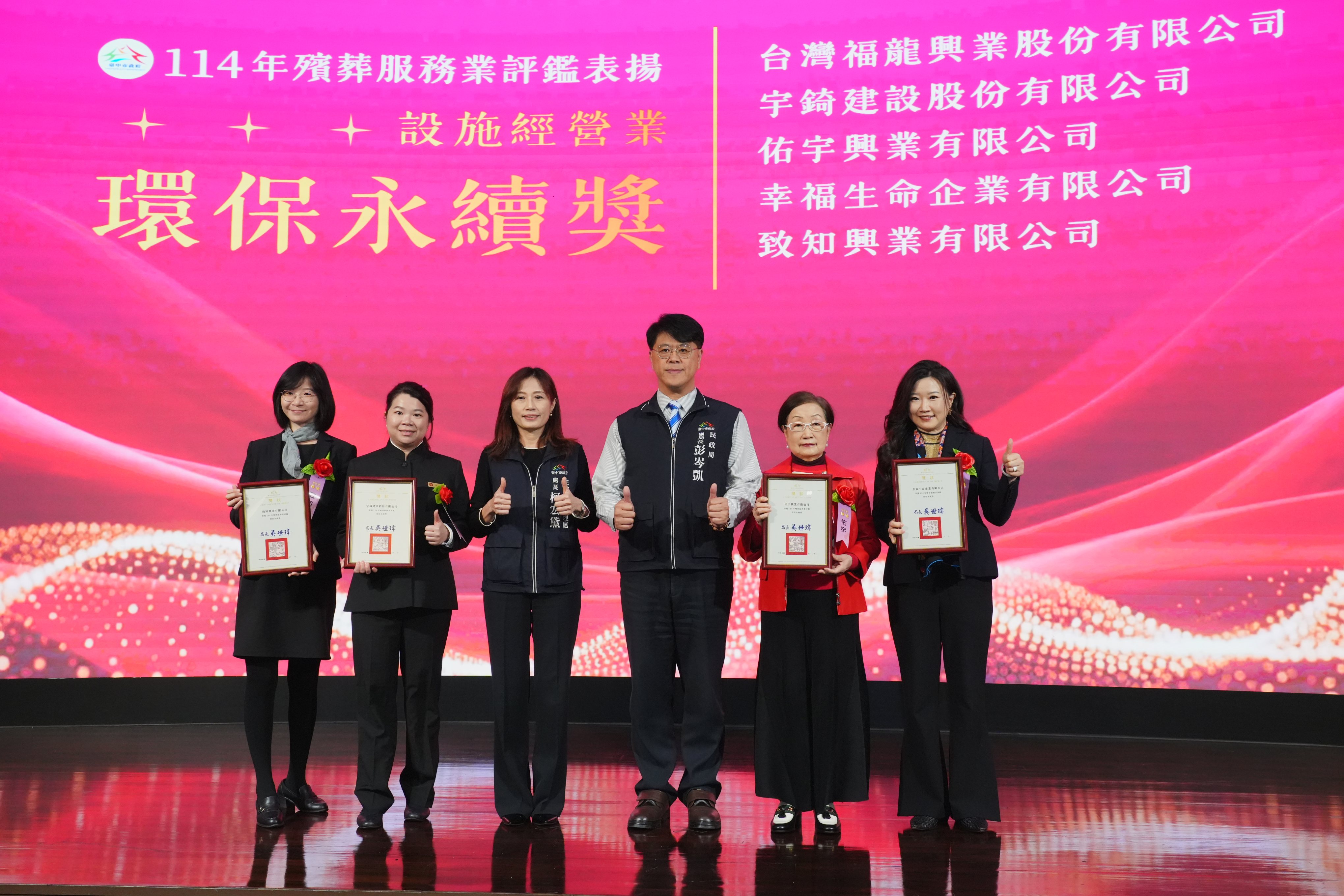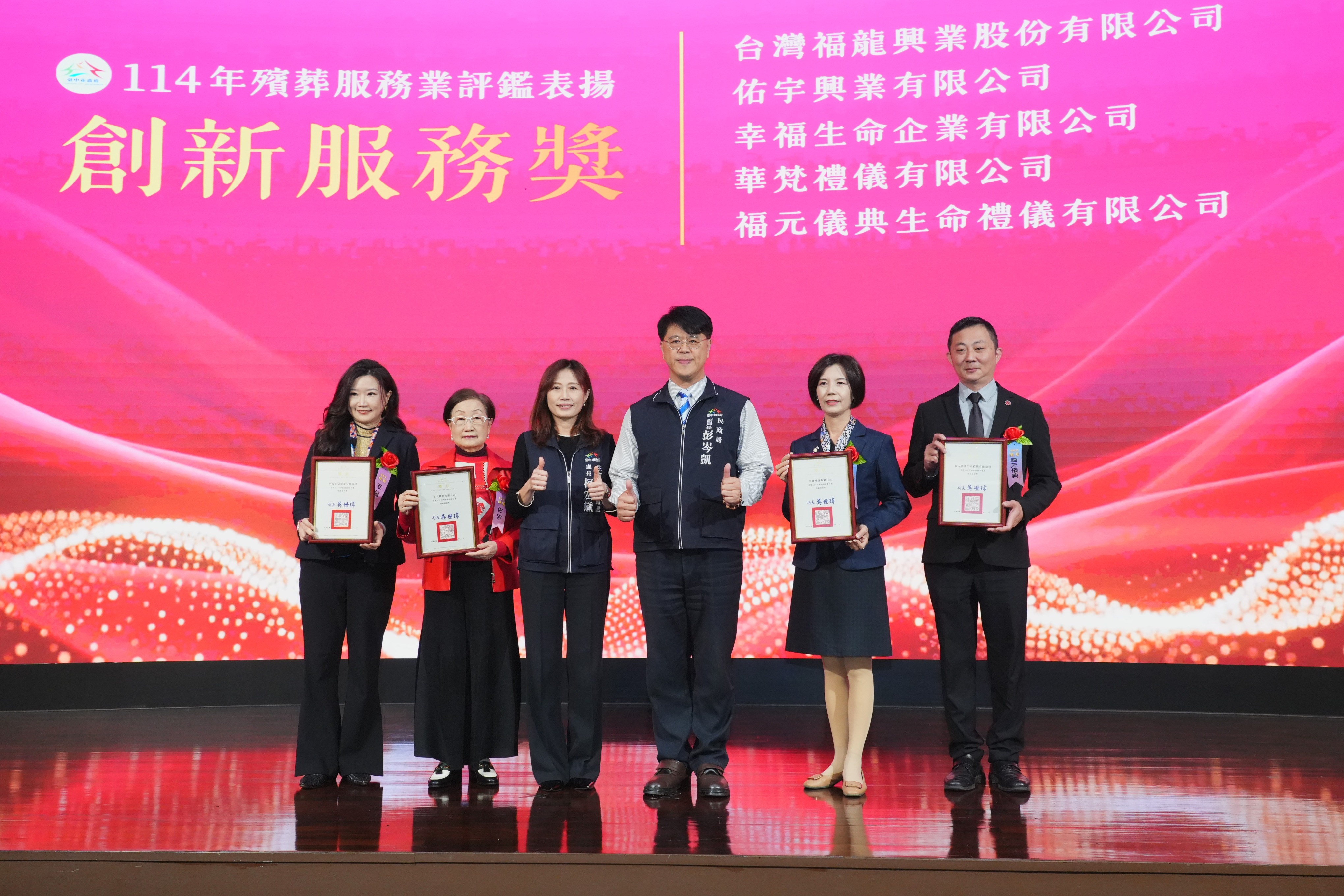 生管處長柯宏黛提到,今年評鑑中可見多數業者積極接軌國際ESG(環境、社會、治理)發展趨勢,不僅在喪葬儀節中落實性別平權理念,如女兒捧斗、女性封釘等作法,也推動以米代金等環保節葬措施,並結合科技創新服務,展現兼顧人文關懷與永續發展的專業精神。此次特殊榮譽獎項中,共有10家業者獲頒性別平等獎、16家環保永續獎、5家創新服務獎及3家人文關懷獎,充分展現殯葬業多元且具前瞻性的發展成果。