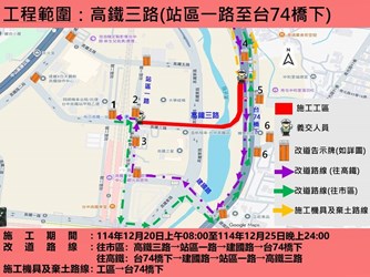 建設局呼籲,用路人於施工期間務必遵守現場交通指示及改道路線,不便之處敬請見諒。工程完工後,將可顯著提升橋梁通行效率與行車安全,進一步強化往返高鐵站區的交通效率,市府也將持續推動道路改善計畫,打造更安全、順暢的用路環境。(12/17*15)*建設局