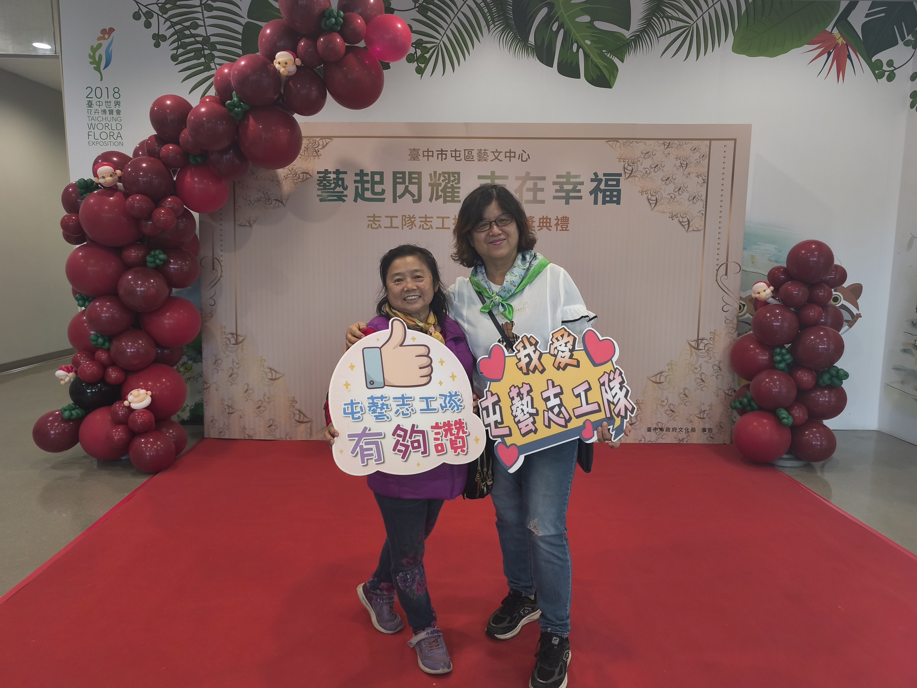 屯區藝文中心志工隊成立至今已17年,現有134位志工夥伴,其中近半數服務年資超過十年,年度服務時數更累計約2萬3千小時,展現穩定而深厚的文化服務能量。今年志工隊表現亮眼,多位志工獲中央與地方志願服務獎項肯定,有一對姊妹志工分別榮獲台中市志願服務一等獎及衛生福利部銀牌獎,長年投入藝文推廣與公共服務。