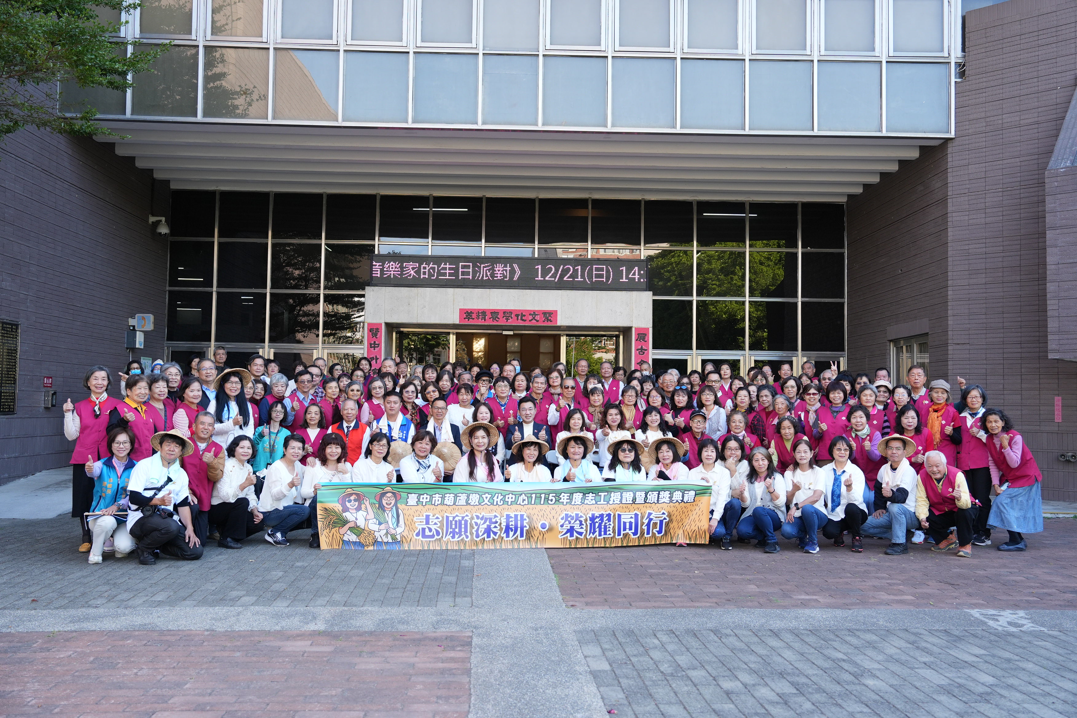 大墩文化中心志工隊中,多位資深志工服務年資長達30至35年,長年投入藝文活動推廣與觀眾服務,其中更有志工榮獲文化部全國績優文化志工金質獎與銅質獎肯定,展現大墩文化中心志工世代傳承、穩定付出的深厚能量,成為台中藝文推廣不可或缺的溫暖力量。今年共為 153 位志工授證,並表揚逾百人榮獲中央、地方及中心各項志願服務獎項。