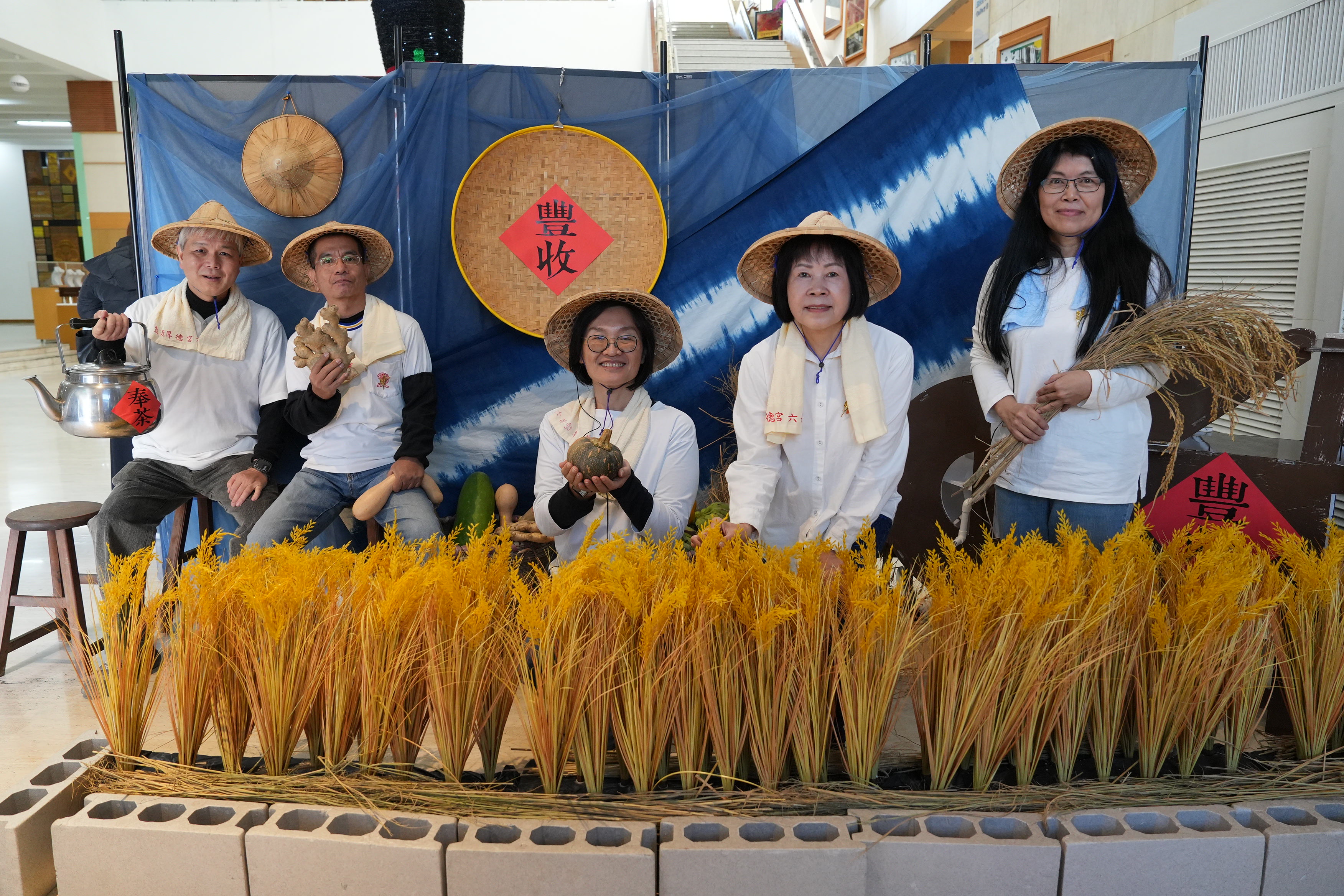 葫蘆墩文化中心志工隊是全國少數三度榮獲文化部「全國文化績優志工團隊獎」最高榮譽殊榮的頂尖志工團隊,多年來參與推廣藍染工藝,吸引國內外交流團隊關注,今年表揚暨授證典禮以「金稻豐收」為主題,象徵以愛灌溉耕耘,最終綻放金黃閃耀的文化風景,也透過「新社市民野餐日」打造藍染休閒區,讓傳統工藝成為文化亮點。隊中服務最久、年資達37年的志工余松根今年榮退,展現一代又一代文化志工的傳承與延續。