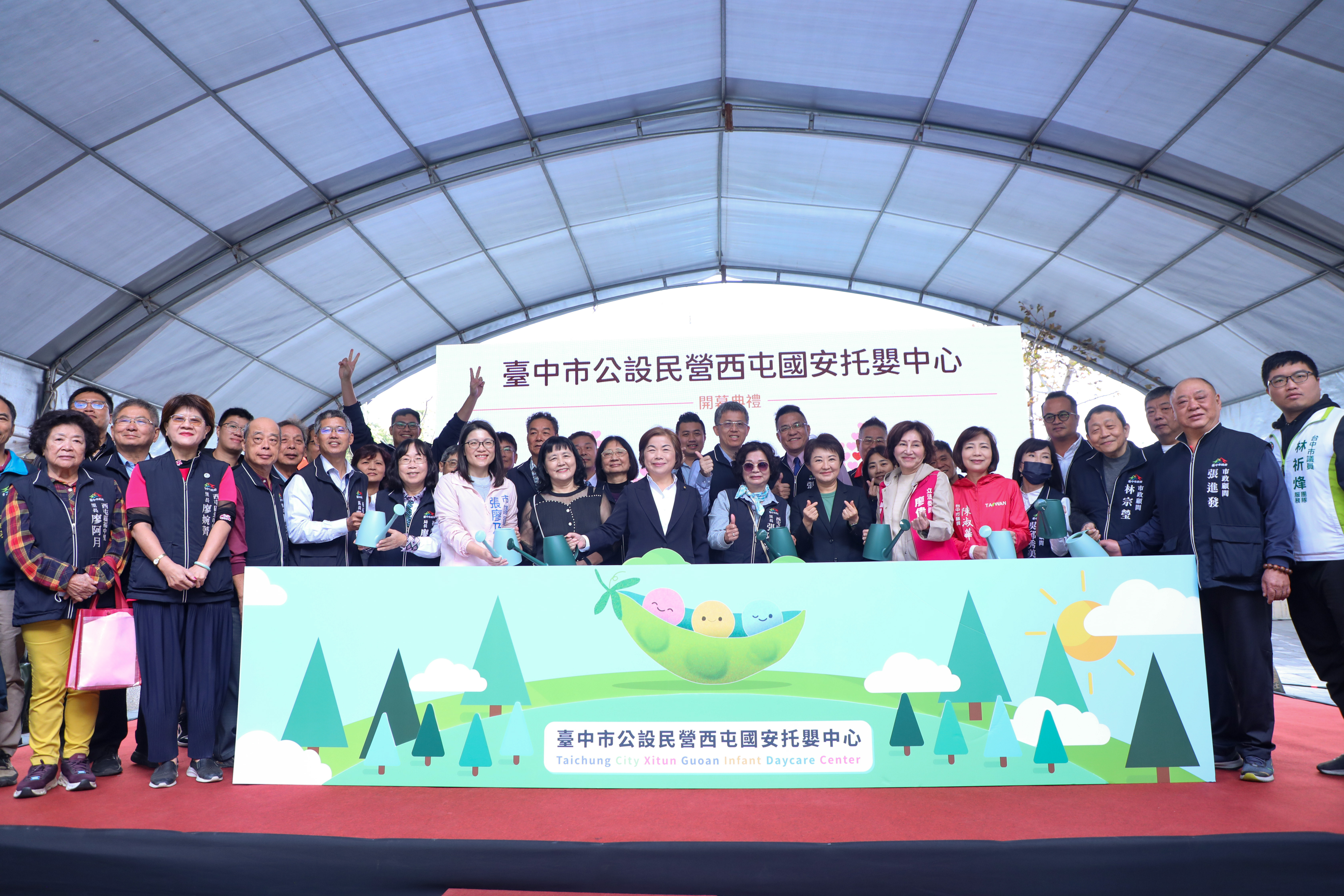 台中市西屯國安公托今(18)日歡慶開幕,市長盧秀燕開心宣布,這是台中市第6處好宅公托。為了鼓勵年輕人生養,台中市公托數量不但超越9倍增,新婚2年內夫妻及育有未滿6歲子女的家庭入住好宅比率更達14.7%,趕過中央5%的目標,打造育兒家庭的幸福好宅,更是送給市民最溫暖的耶誕禮物。
