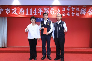 台中市政府今(19)日於市政大樓舉辦治安公安聯合會議,由市長盧秀燕主持,並頒發「台中市成功攔阻詐騙案件有功人員」感謝狀,表揚在第一線成功守護市民財產安全的金融機構人員、地政及警察同仁。盧市長表示,近年詐騙猖獗,所幸這群城市英雄以高度警覺與同理心,及時攔阻詐騙,守住市民畢生積蓄。市府藉由這場重要會議公開表揚,感謝他們為城市安全所做的重要貢獻。