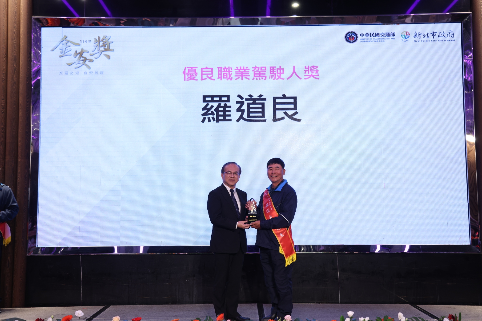 葉局長指出,交通部今年度辦理的金安獎個人獎項中,職業汽車駕駛人名額減少到只有10位,相較去年有27位獲獎名額,駕駛人羅道良從各縣市激烈競爭中脫穎而出,除了展現駕駛的服務精神獲評審委員認可外,也是對台中市計程車整體服務品質的肯定。