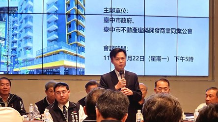 此次座談會廣邀台中市不動產建築開發商業同業公會成員,以及市府相關局處首長與代表出席,市議員李中亦到場督促聆聽專業意見。會中公會各代表感謝市府能藉此會議持續傾聽業界聲音,共同為打造宜居幸福城市發展而共同努力。林副秘書長最後再次代表盧市長感謝各界熱情與會,並表示將延續座談會辦理精神,在推動各項政策與計畫落實的過程中,持續集思廣益,使政策研擬更加周延,進而建構中台灣完整且具前瞻性的區域發展藍圖。