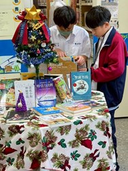 聖誕佳節將至,台中市各校規劃聖誕主題閱讀與書展活動,將節慶氛圍融入校園日常學習,五花八門的活動內容包括「寫信給聖誕老公公」書寫感恩卡並製作耶誕造型角書籤,還有校長、愛心媽媽志工與學生攜手演出短劇及有獎徵答等等,讓孩子在冬日校園享受溫暖、令人期待的閱讀時光。