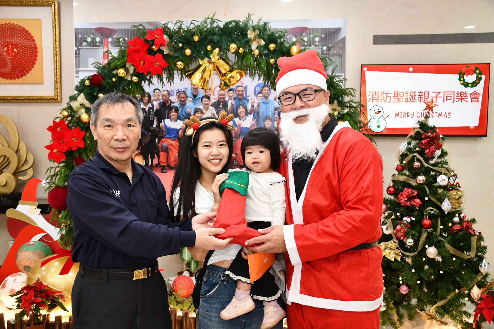 其中活動的重頭戲,由消防局長孫福佑精心準備聖誕禮物,並由主任秘書林瑞章代表致贈學童;消防局表示,消防人員平時面對各類災害現場,肩負守護市民生命財產安全的重大責任,透過此次活動,在聖誕佳節的溫馨氣氛中向孩子傳遞安全知識,也讓同仁能在工作與家庭之間取得平衡,藉由家庭日活動增進親子情感,也教導孩子們在平安夜這天把愛拿出來,分享給家人與社會。