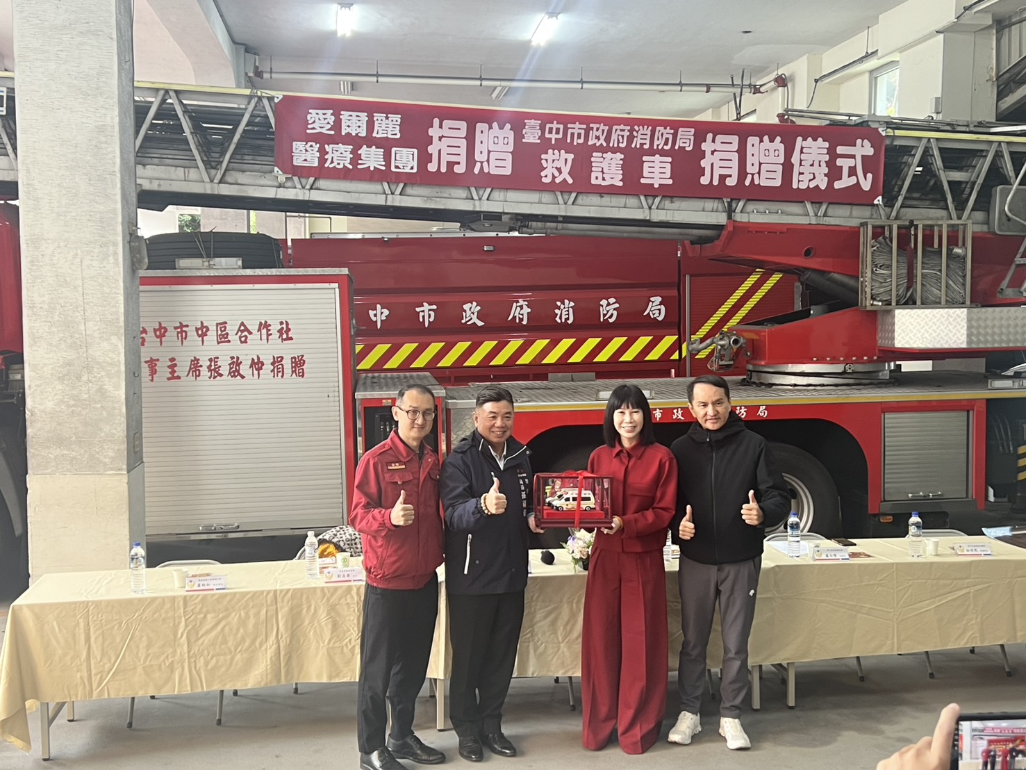 消防局補充,隨著近年救護需求逐年攀升,救護車輛與設備的充實已成為刻不容緩的要務。愛爾麗醫療集團秉持回饋鄉里、守護市民生命安全的理念,此次特別捐贈救護車1輛及多項救護器材,支援第一線救護勤務,對提升城市整體急救能量具有深遠意義。