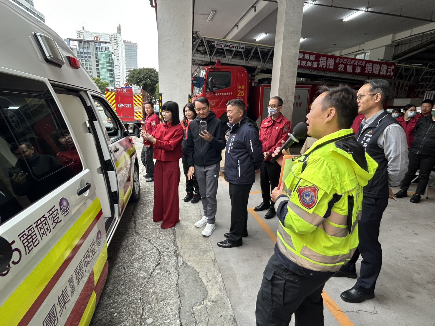 「愛爾麗醫療集團」長期投入社會公益,持續以實際行動守護民眾生命安全,迄今已於全國捐贈共65輛車輛,台中市政府消防局說明,其中包含救護車、復康巴士等,其中台中市受贈2輛,均配置於消防局專責救護隊。集團於104年11月捐贈首輛救護車後,今(26)日再度捐贈第2輛救護車,亦為全國第65輛,持續挹注第一線救護量能,展現企業回饋社會的長期承諾。