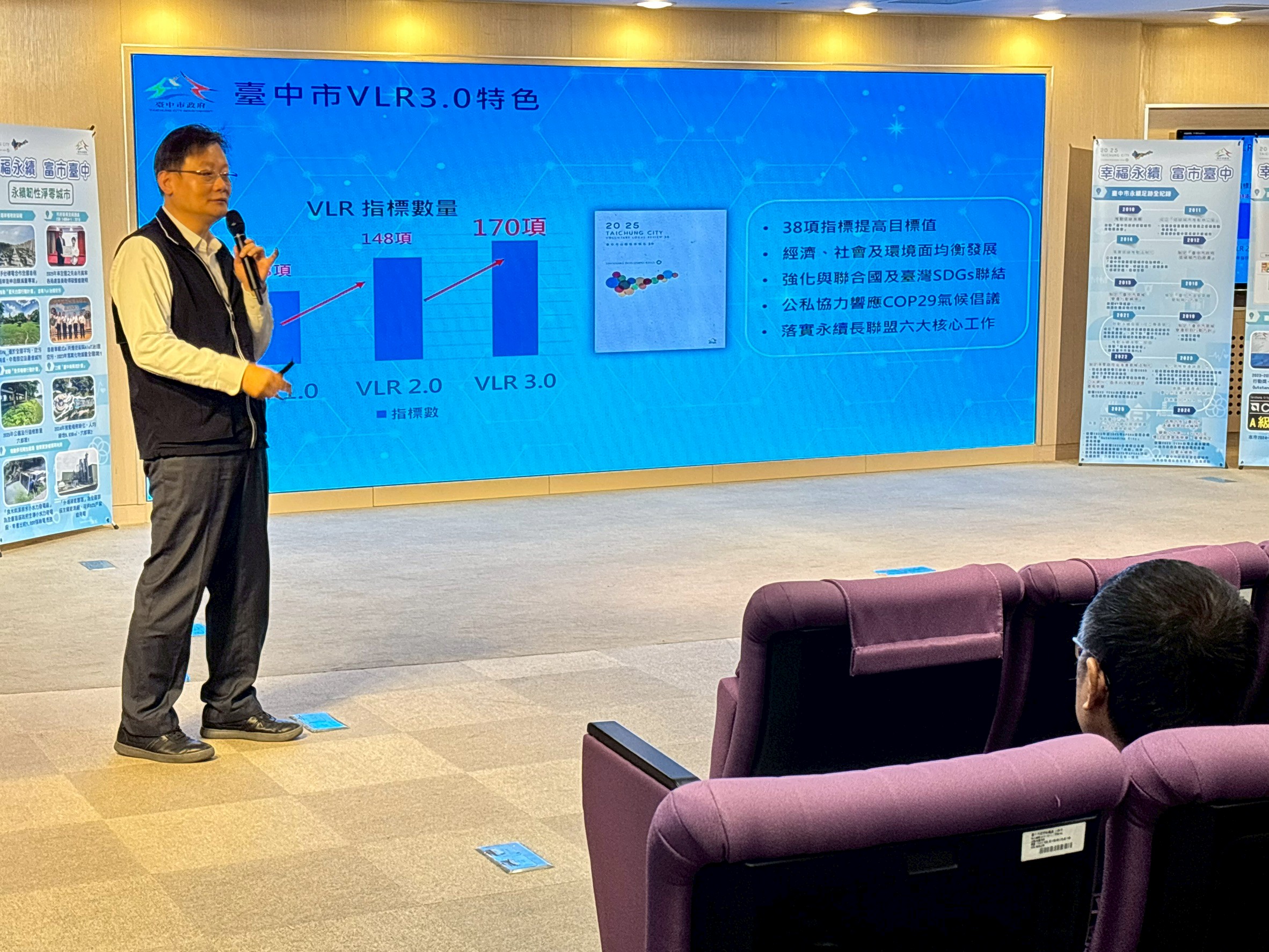 秘書長黃崇典表示,VLR 3.0紀錄著台中實踐17項SDGs的階段性成果,更是邁向下一階段永續發展的行動宣言,將永續指標由148項增至170項,永續計畫由145項增至162項,並提高多項永續指標的目標值,設定合理具挑戰性的目標,報告內容更符合聯合國高階政治論壇及全球環境戰略研究所(IGES)永續報告書撰寫原則,從報告內容的精進到永續指標質與量的提升,皆展現市府追求卓越永續治理的承諾。