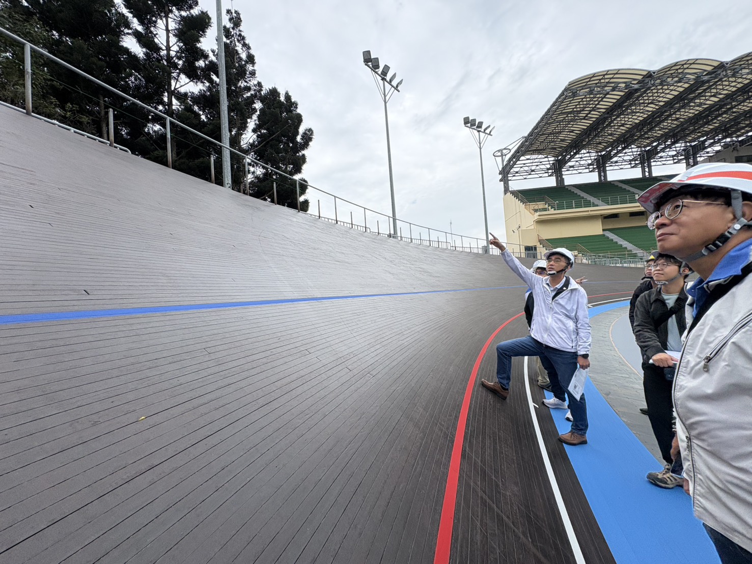 台中自由車場為國內重要自由車比賽場地,歷年承辦多項全國及國際賽事,市府持續致力打造完善、安全且符合賽事需求的訓練環境,去(113)年成功爭取中央補助2,500萬元,市府自籌2,500萬元,總經費5,000萬元,針對場地設施與訓練支援系統進行全面升級。施工期間由運動局長游志祥親自前往現場視察工程成果,了解整體工程執行情形,並聽取施工單位簡報,確保施工品質與工期,讓場館如期升級到位,預計今年底前完竣,將成為全台唯一引進國際級計時計分系統的自由車場地。