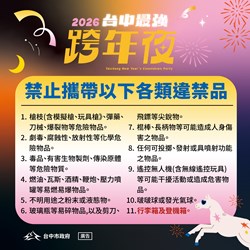 欒局長也強調,台中跨年晚會規模為全國最大,因應龐大參與人潮,市府全面升級維安層級,並已於昨(29)日完成跨局處聯合演練。活動當日將實施入場安檢,提醒民眾配合暫時脫口罩,切勿攜帶行李箱、易燃、易爆物品及刀械等危險物品;同時規劃兩種細胞簡訊機制,包含人數接近上限時的預防性通知,以及發生突發事件時的即時通報與疏散指引,請民眾收到簡訊時勿驚慌,並配合現場工作人員引導。