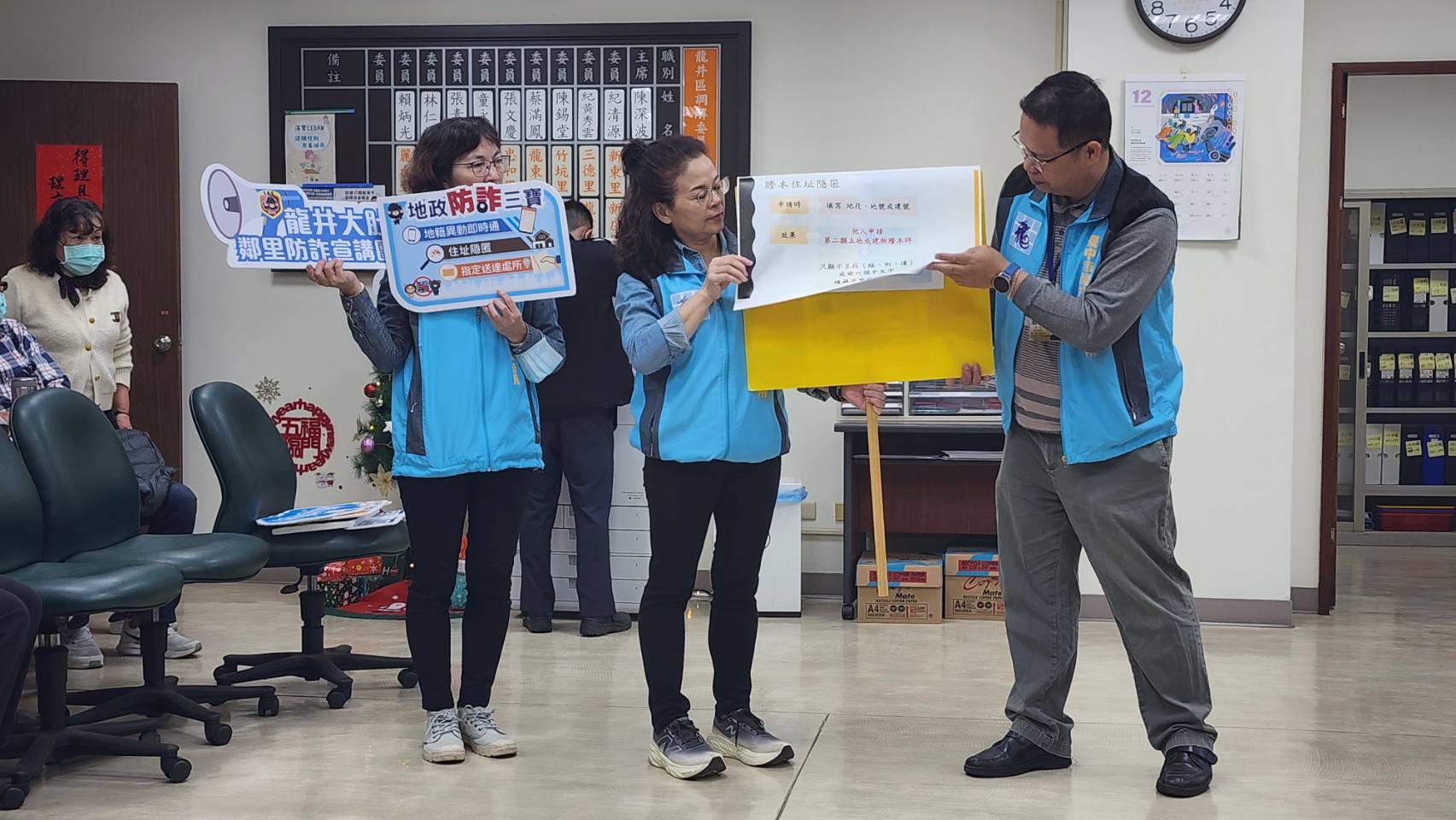 為提升民眾識詐能力並降低不動產詐騙風險,台中市龍井地政事務所攜手龍井區調解委員會,除向調解委員宣講「地政防詐三寶」包含地籍異動即時通、住址隱匿及指定送達處所等相關措施,並於現場協助委員完成申辦作業,更期盼借重委員第一線接觸民眾的優勢,普及防詐觀念,合力守護里民產權安全。