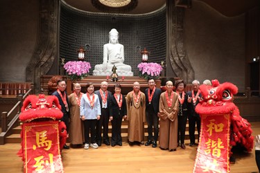 盧市長指出,佛光山開山已滿六十年,今年亦適逢星雲大師百歲冥誕。星雲大師生前時常勉勵大家推動人間佛教,佛光山也因此長年致力於弘揚佛法、佛光普照。人間佛教不僅著重於宗教教義的傳承,更涵蓋教育、文化與藝術等多元面向。除推動佛光山各項弘法事業外,星雲大師亦創立美術館,並捐出其珍藏的國學與佛學文物,期盼讓更多民眾能夠親近、欣賞。今日透過開幕典禮,一同慶賀佛光山開山一甲子,同時緬懷星雲大師,別具深刻而珍貴的意義。